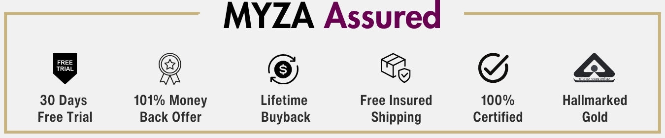 MYZA LAB GROWN (CVD TYPE 2a) only diamonds are from the top 20 percent of the lab grown diamonds available across the globe. Our in-house finest graders and goldsmiths are committed to creating brilliant masterpieces with specialised techniques. MYZA diamond outshines a mined diamond with its clarity, purity, and lustre that lasts a lifetime just like an earth mined diamond.