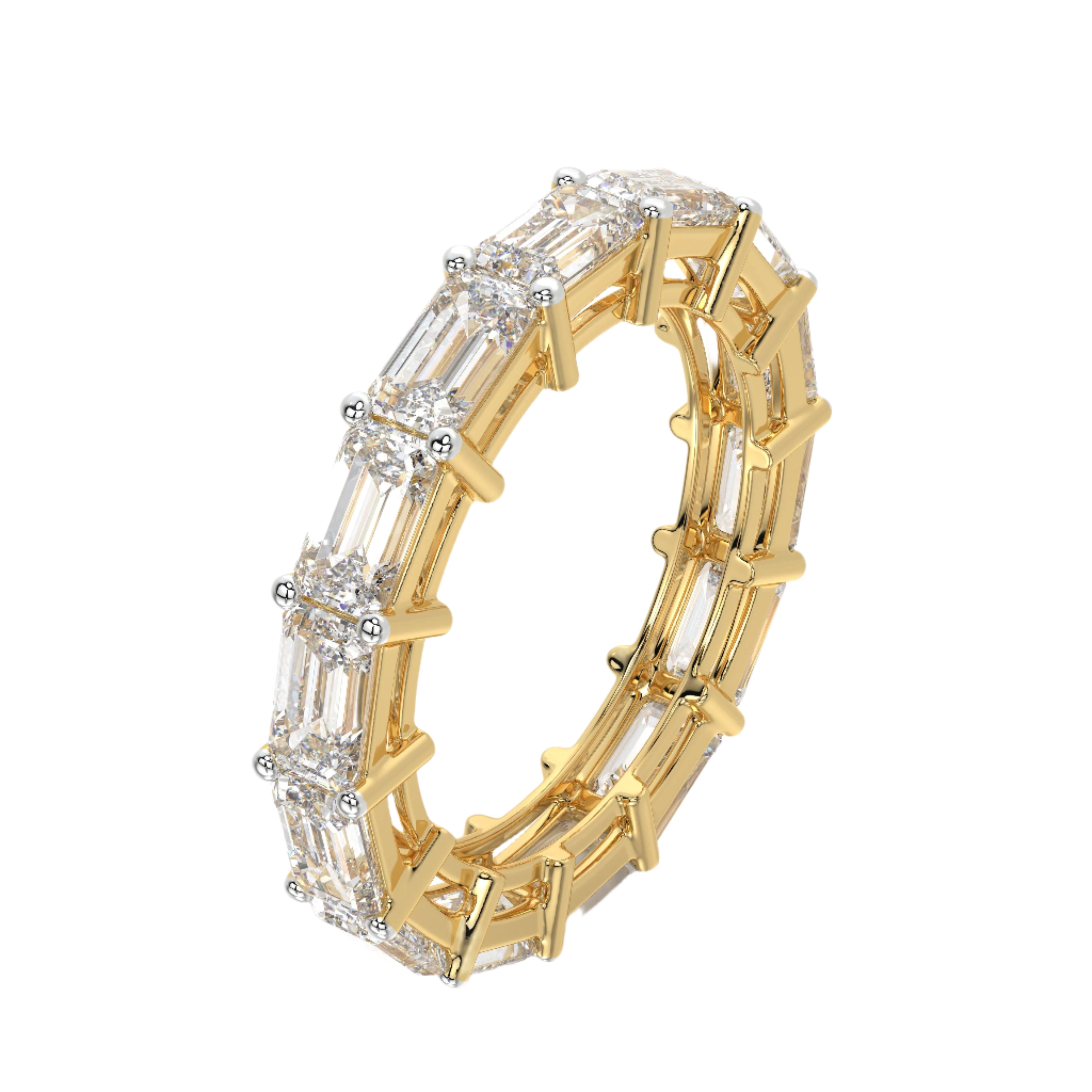 4.2 Carat (30 Cent Each) MYZA IGI Certified Emerald Cut Lab-Grown Diamonds Eternity Band Ring in 18K Hallmark Gold