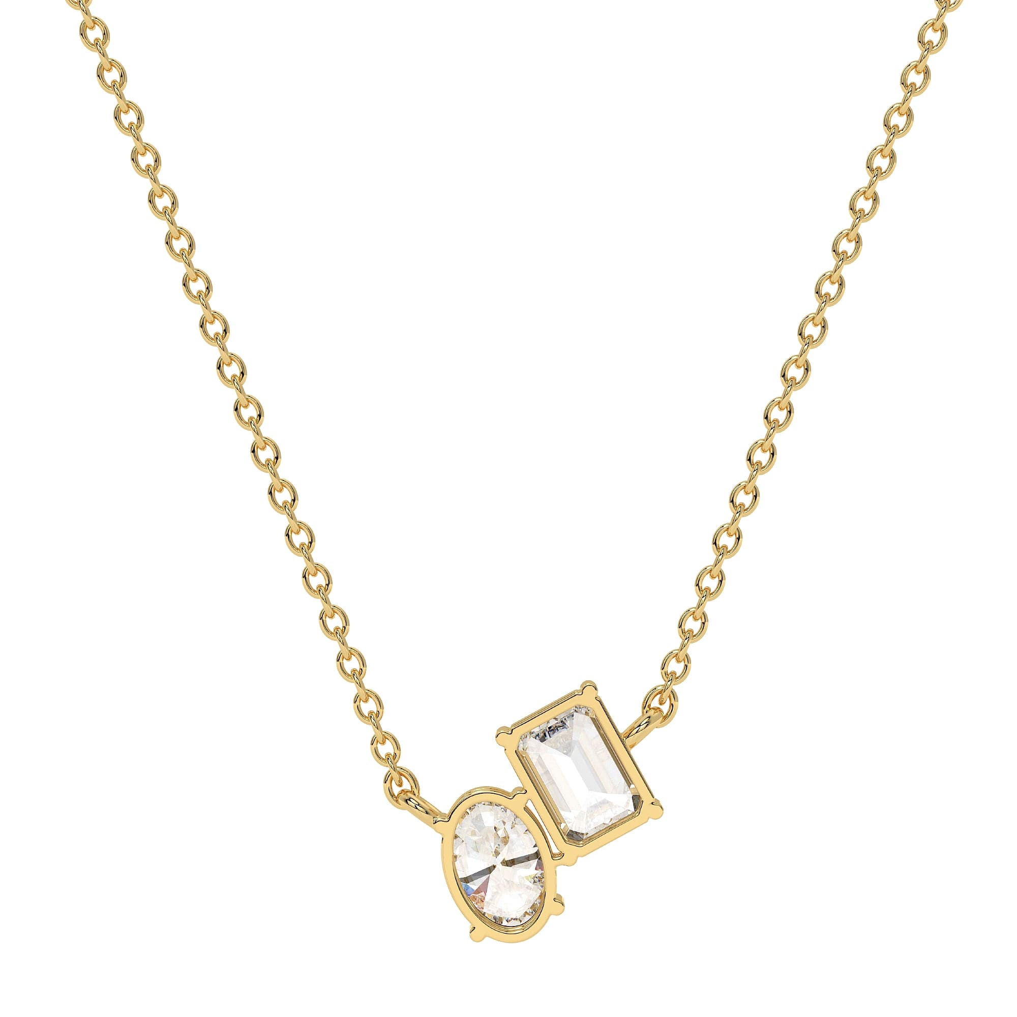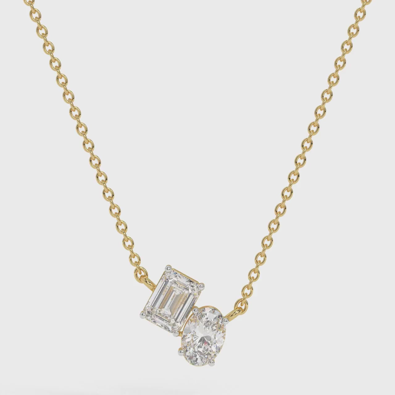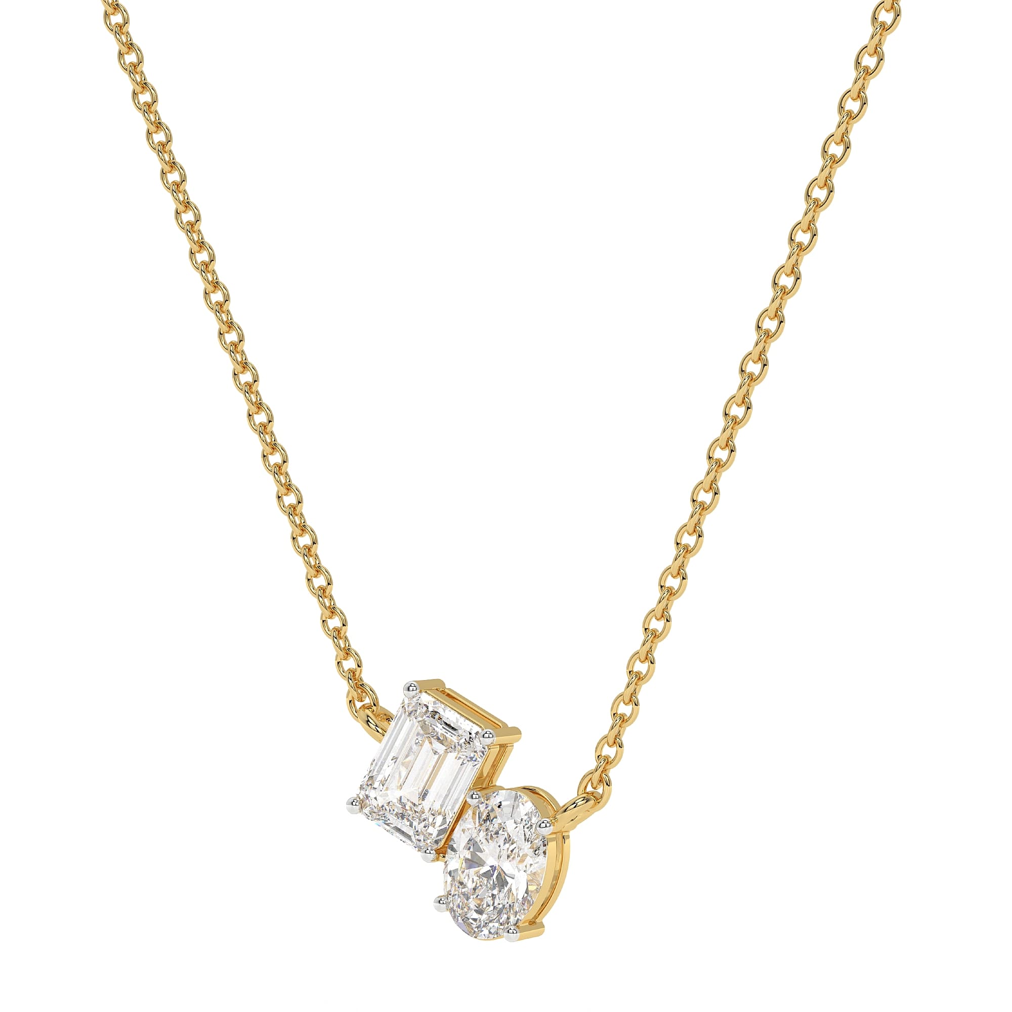MYZA (DVVS2) IGI-Certified Lab-Grown Toi et Moi 2.5 Carat Emerald & Oval Diamond Necklace in 18K Hallmarked Gold