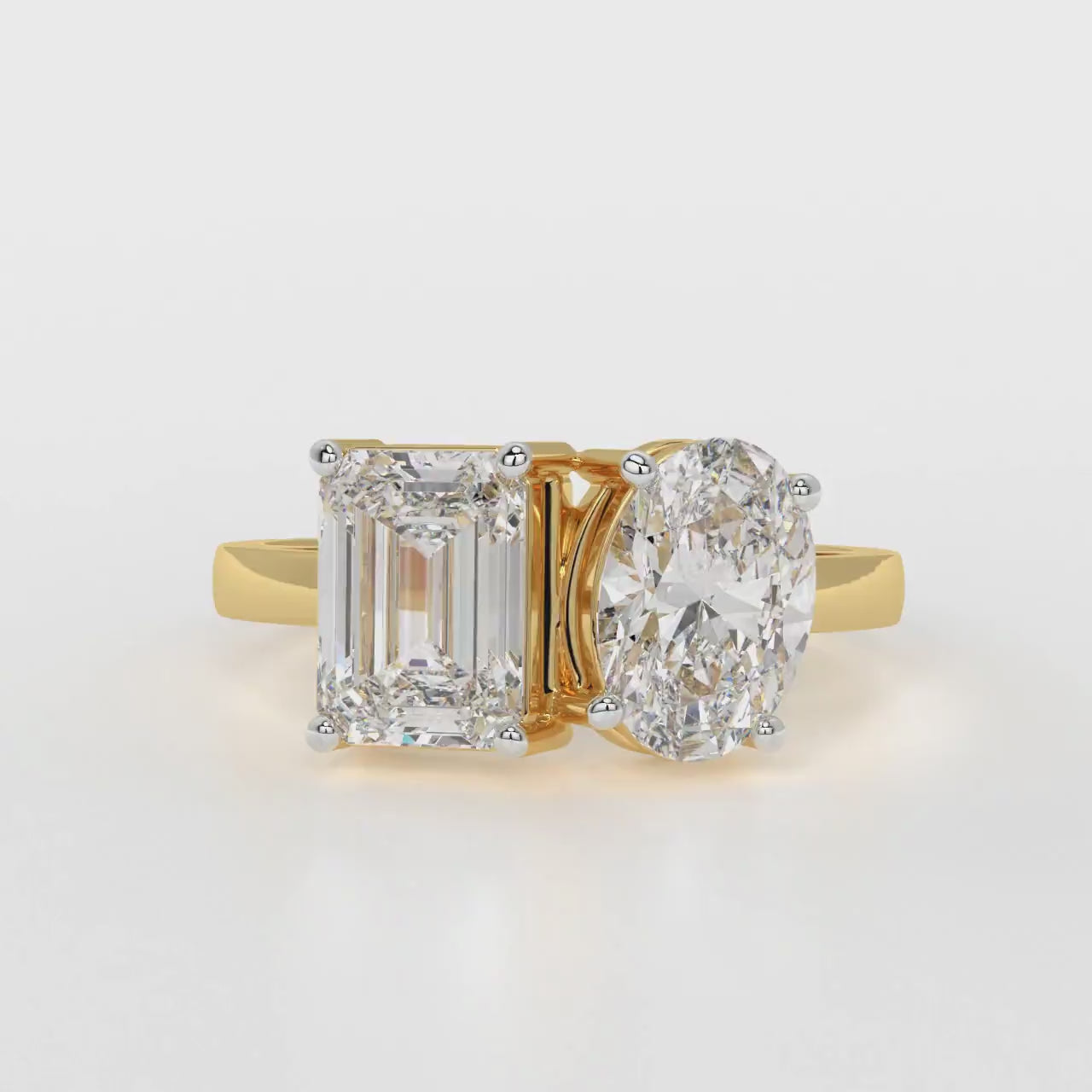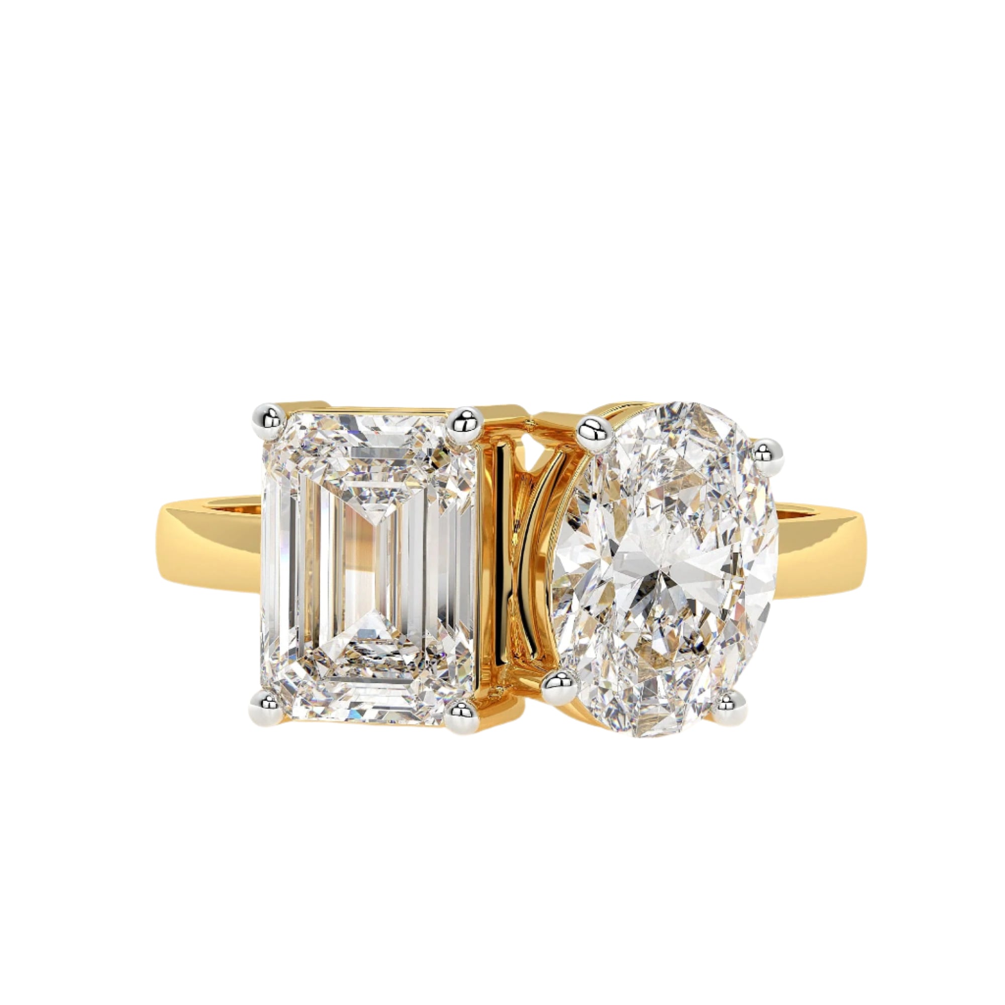 MYZA (DVVS2) IGI-Certified Lab-Grown Toi et Moi 2.5 Carat Emerald & Oval Diamond Ring in 18K Hallmarked Gold