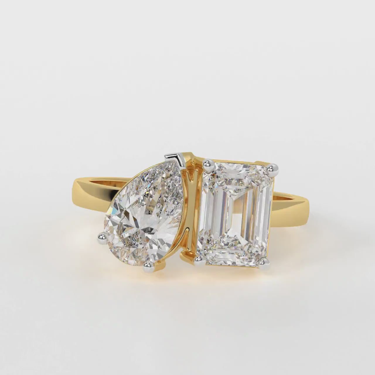 MYZA (DVVS2) IGI-Certified Lab-Grown Toi et Moi 2.5 Carat Pear & Emerald Diamond Ring in 18K Hallmarked Gold