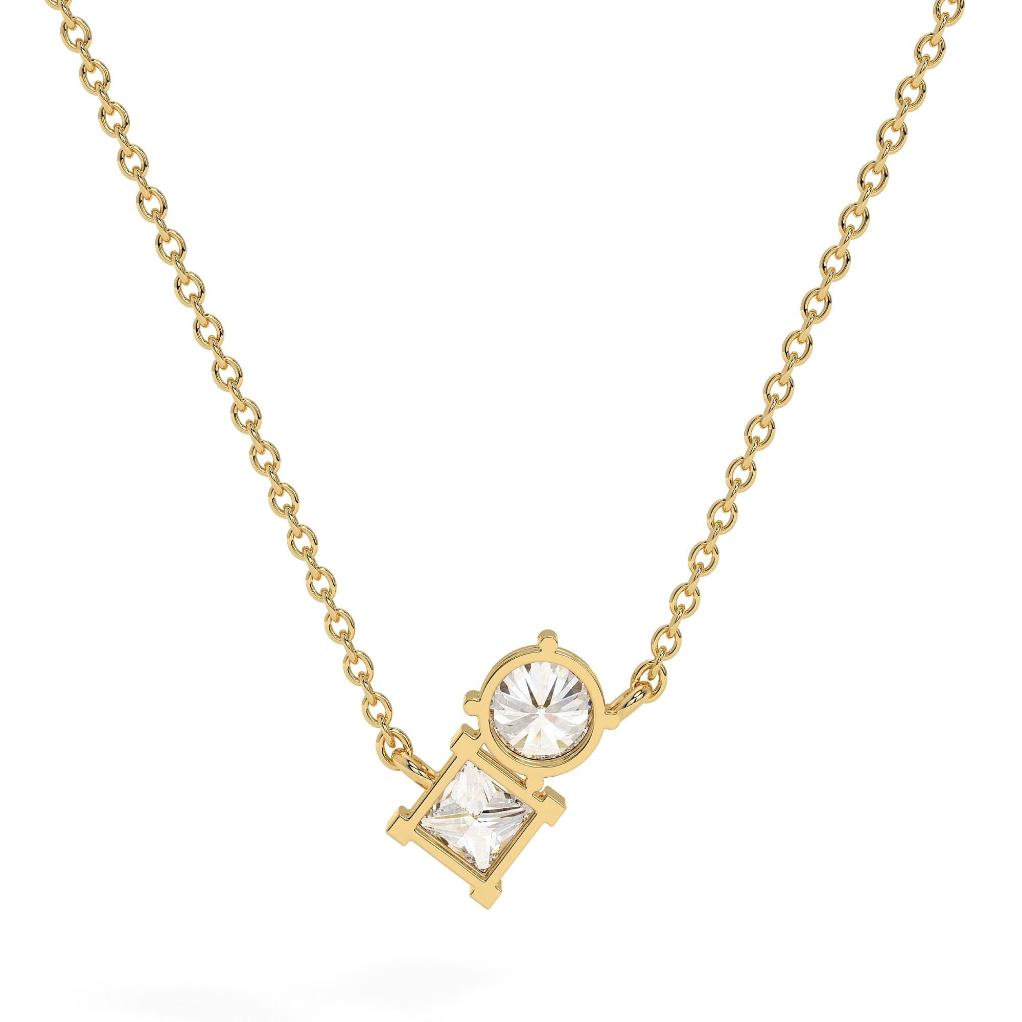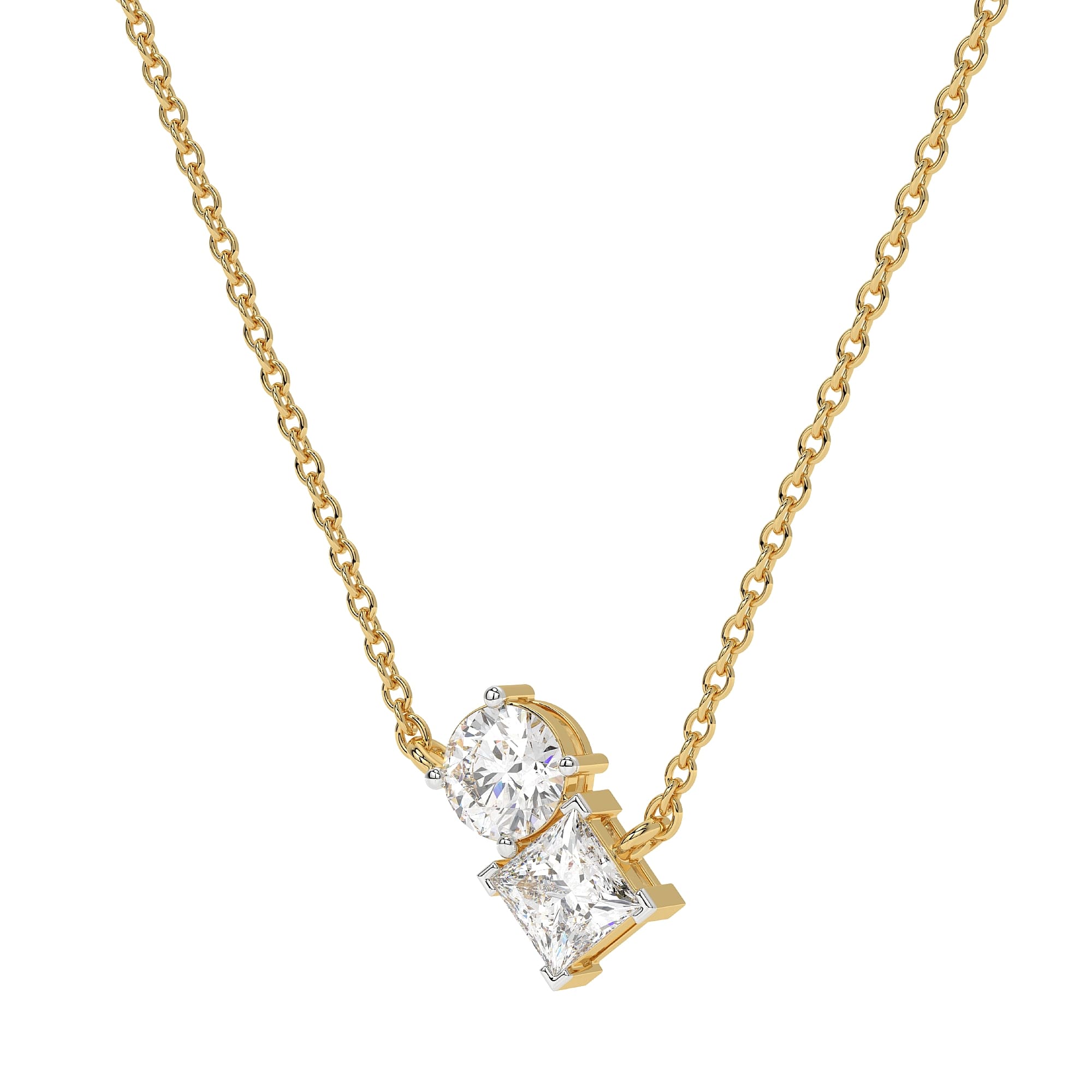 MYZA (DVVS2) IGI-Certified Lab-Grown Toi et Moi 2 Carats Round & Princess Cut Diamond Necklace in 18K Hallmarked Gold