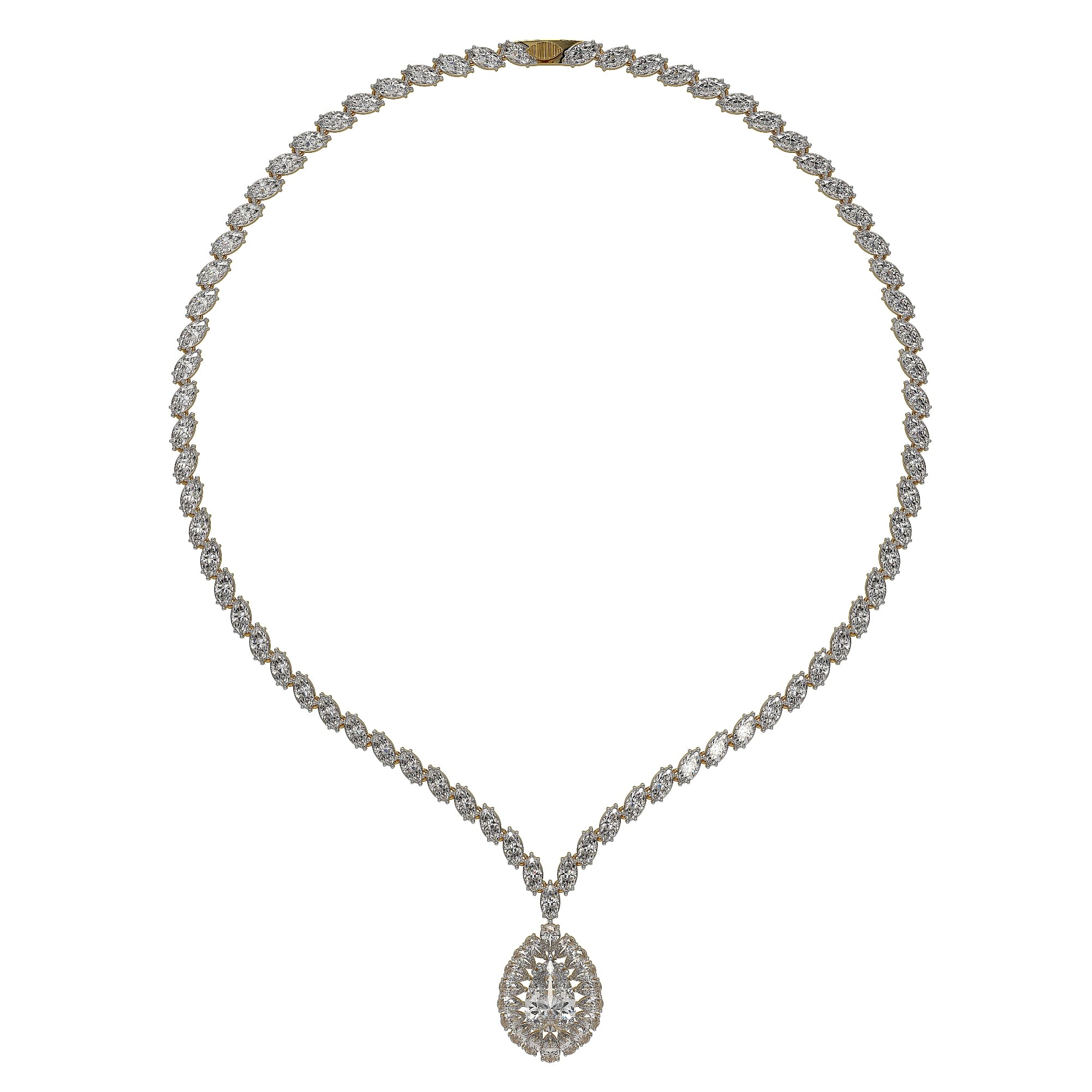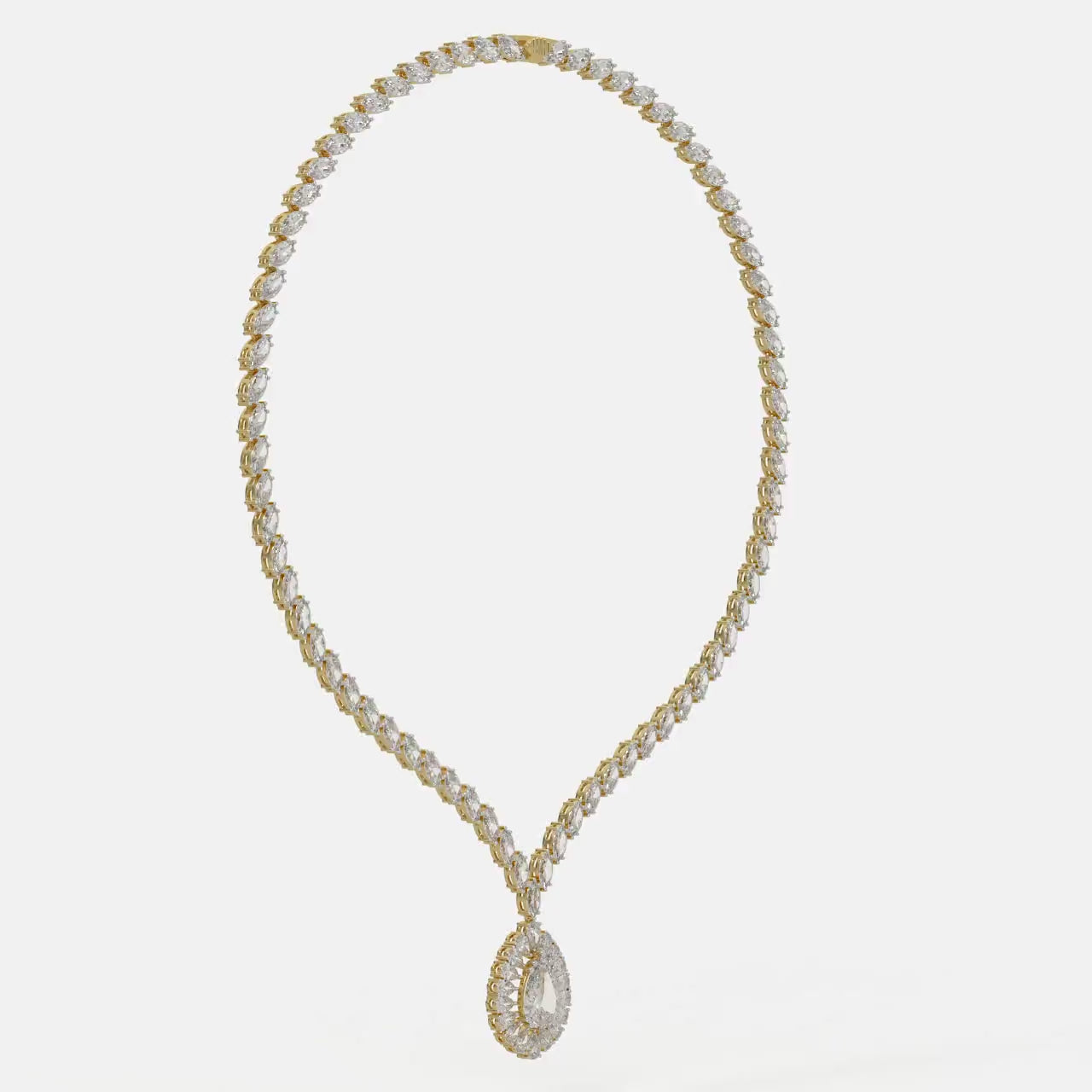 MYZA IGI Certified Marquise with Pear Drop Lab-Grown Diamonds Tennis Necklace in 18K Hallmark Gold