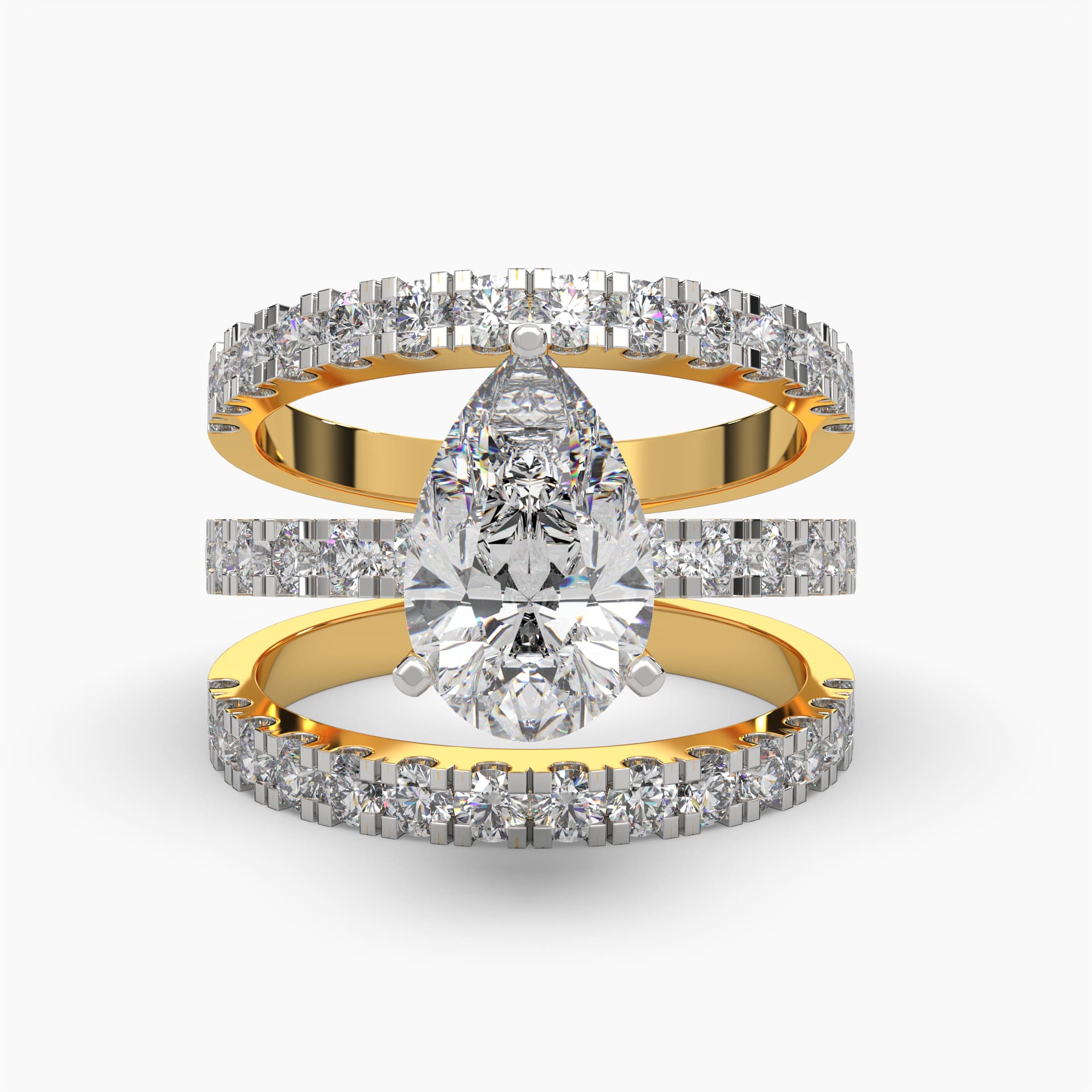 1 to 5 Carats MYZA (DVVS2) IGI Certified Pear Cut Lab-Grown Diamond Stacking Ring (Set of 3) in 18K Hallmark Gold