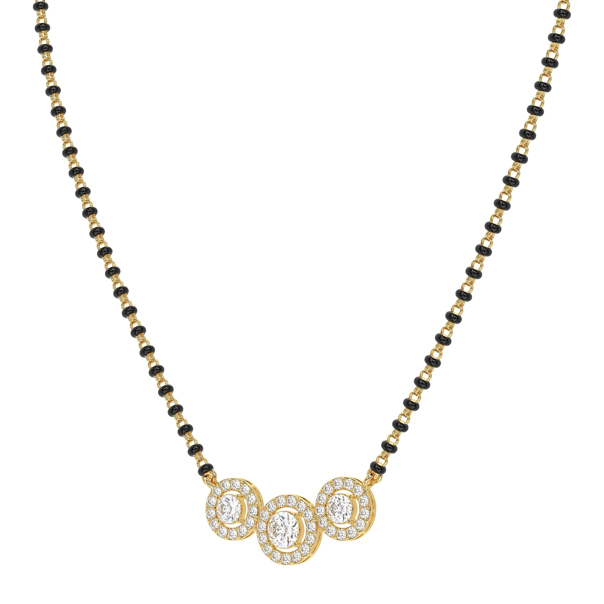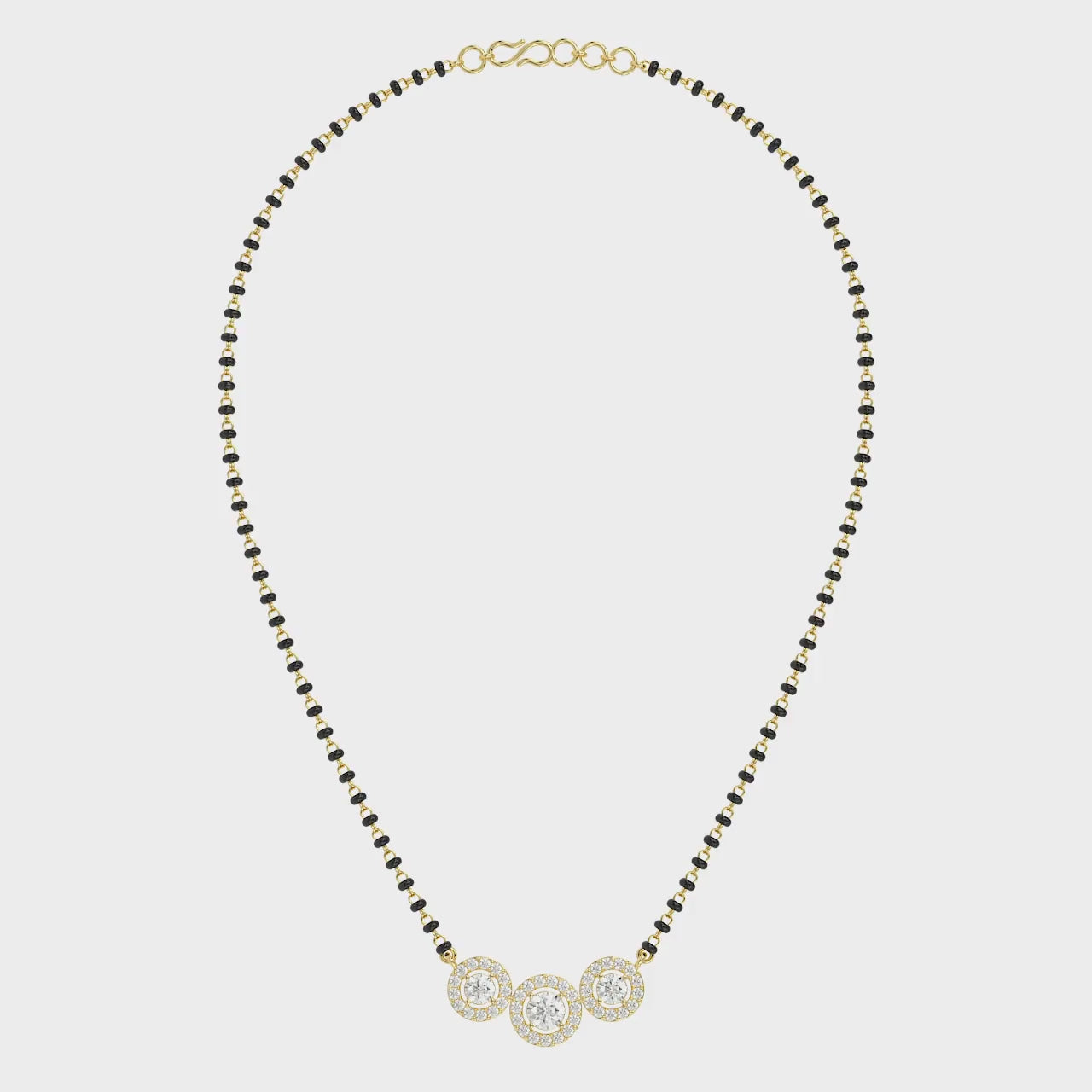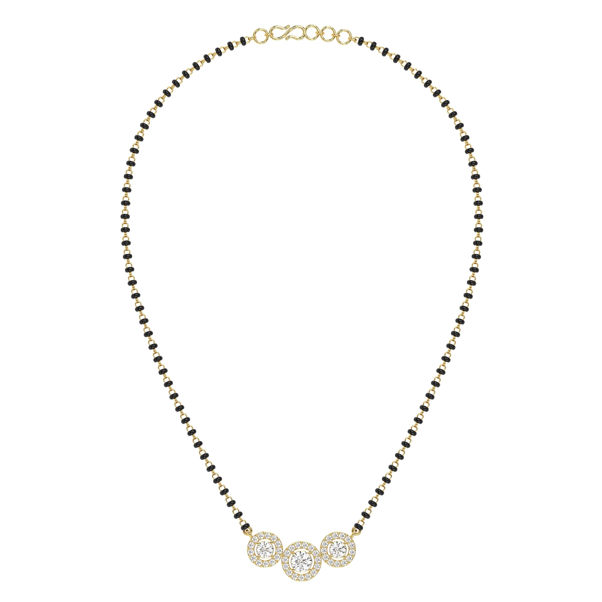3.23 Carat MYZA (DVVS2) IGI Certified Brilliant Round Tri-Halo Lab-Grown Diamonds Mangalsutra with Chain in 18K Hallmark Gold