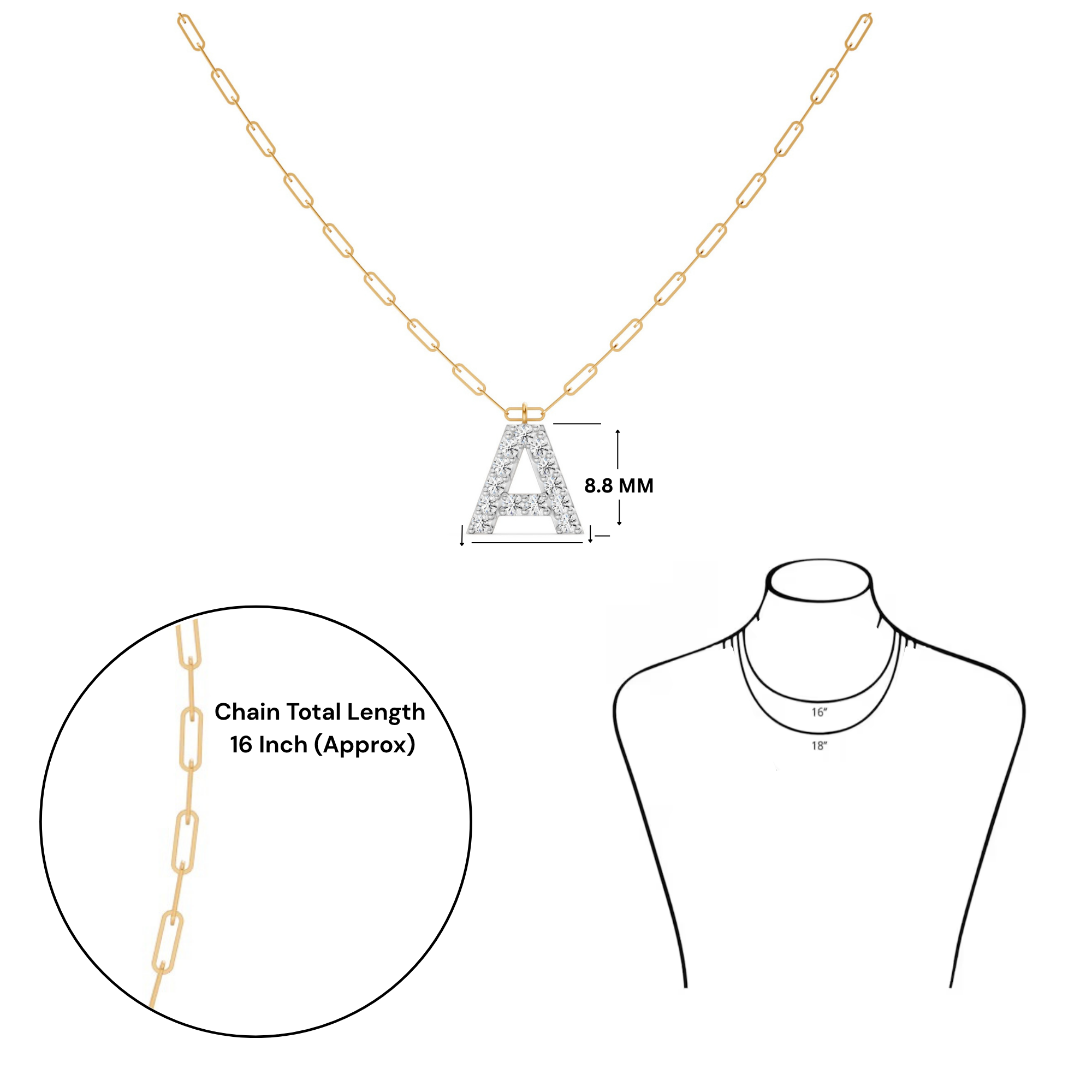 Featuring the timeless MYZA Personalized Letter 'A' Lab-Grown Diamond Necklace in 18K Hallmarked Gold.