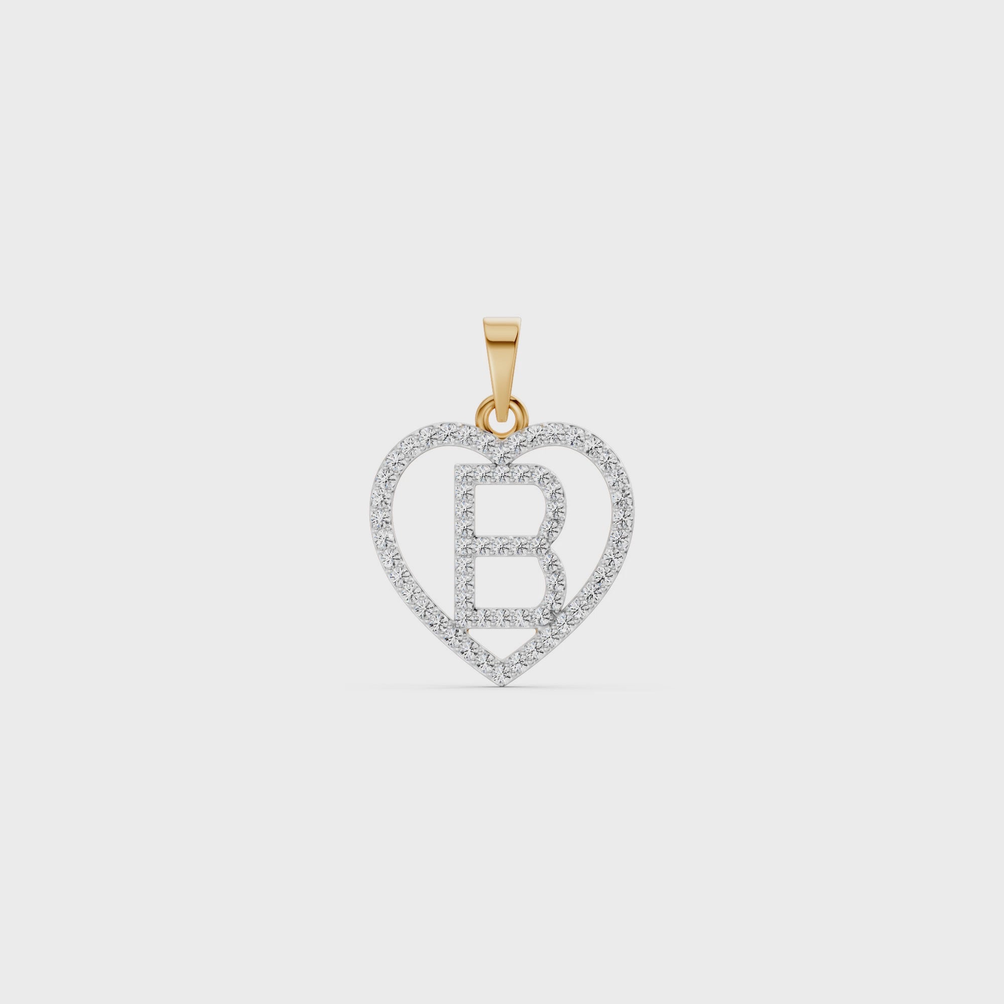 Personalized Letter 'B' Lab-Grown Diamond Heart Pendant in 18K Hallmarked Gold