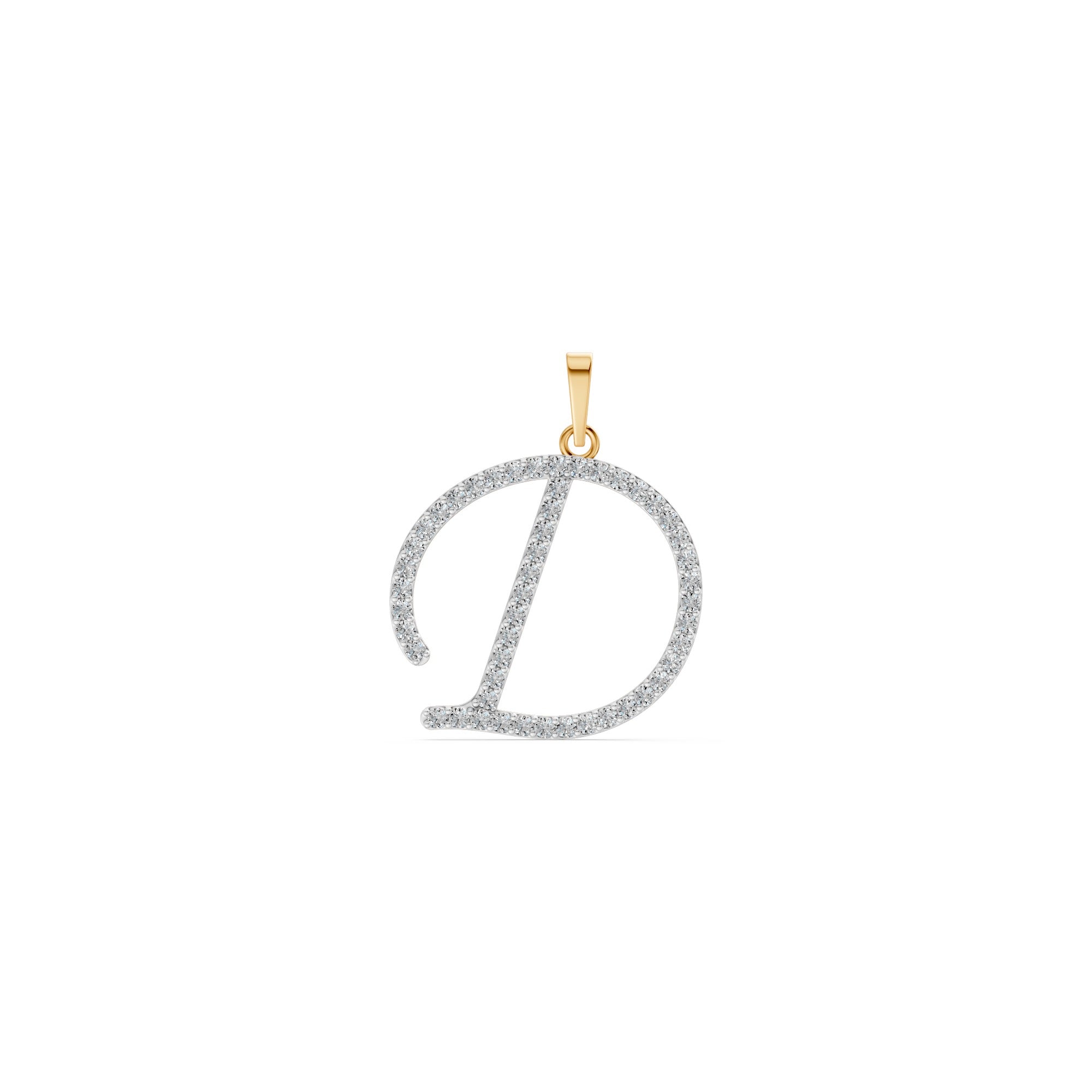 Personalized Letter 'D' Lab-Grown Diamond Fancy Pendant in 18K Hallmarked Gold