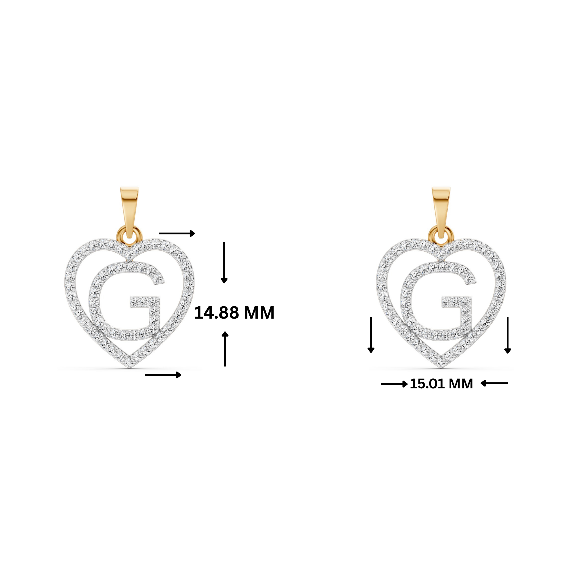 Personalized Letter 'G' Lab-Grown Diamond Heart Pendant in 18K Hallmarked Gold