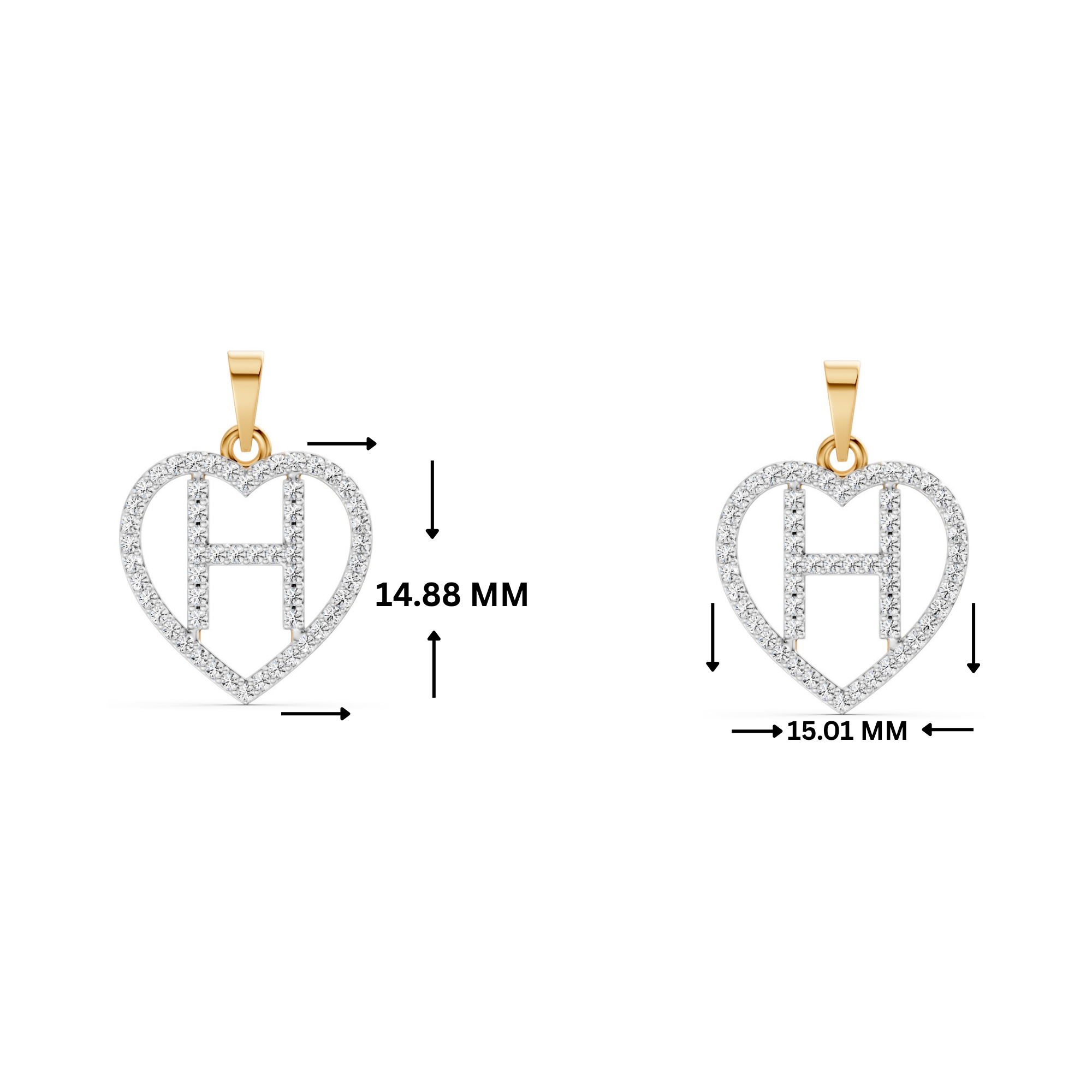 Personalized Letter 'H' Lab-Grown Diamond Heart Pendant in 18K Hallmarked Gold