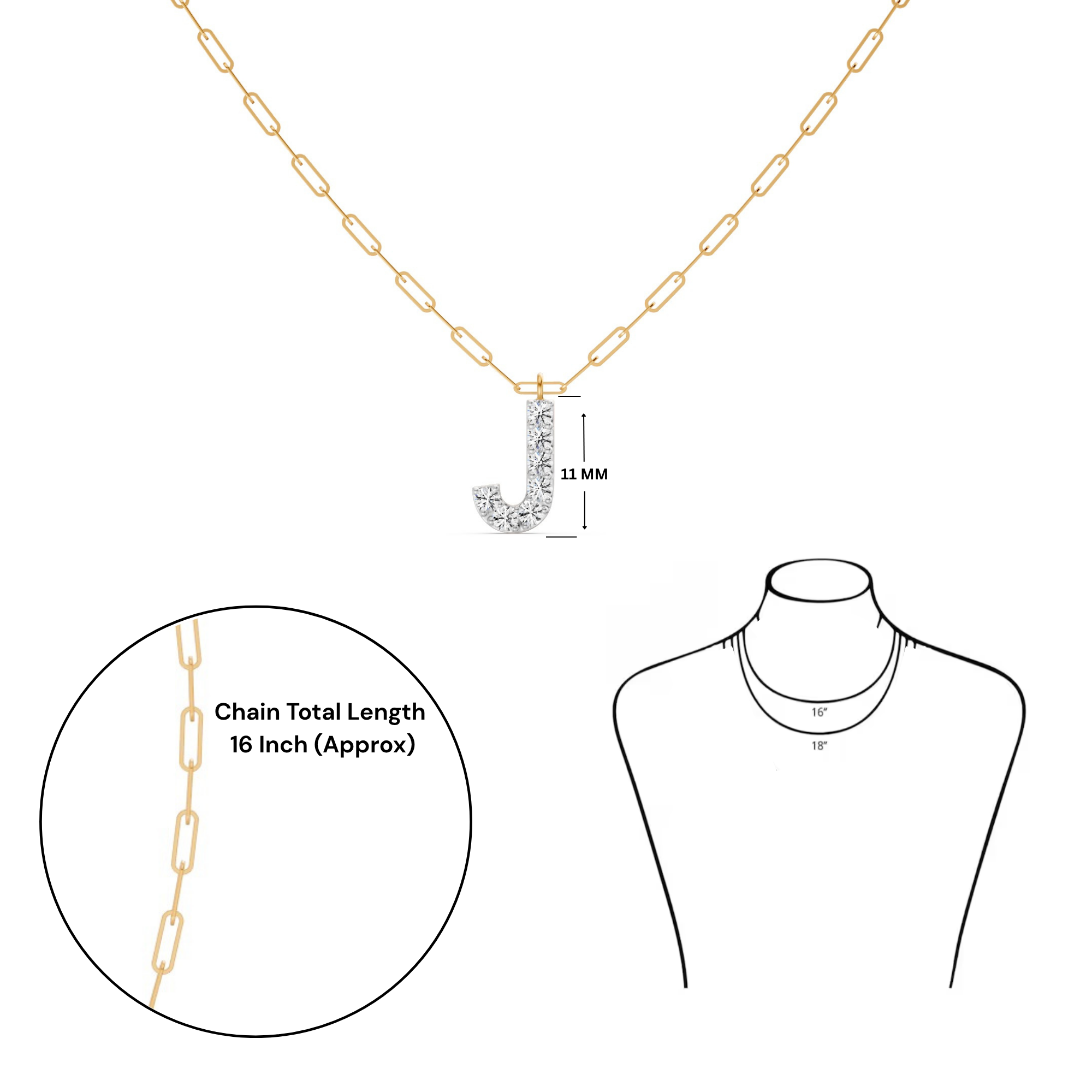 Featuring the timeless MYZA Personalized Letter 'J' Lab-Grown Diamond Necklace in 18K Hallmarked Gold.
