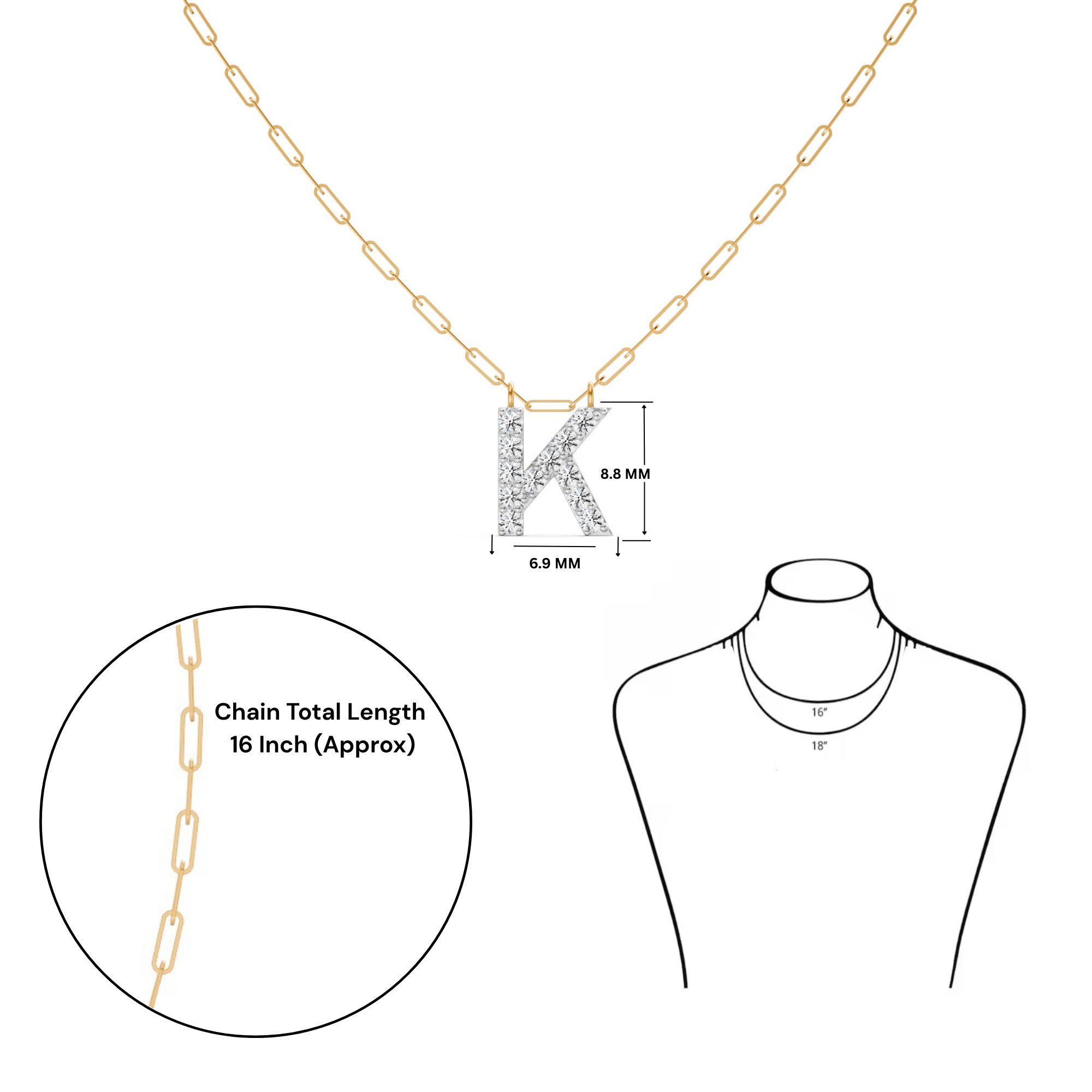 Featuring the timeless MYZA Personalized Letter 'K' Lab-Grown Diamond Necklace in 18K Hallmarked Gold.