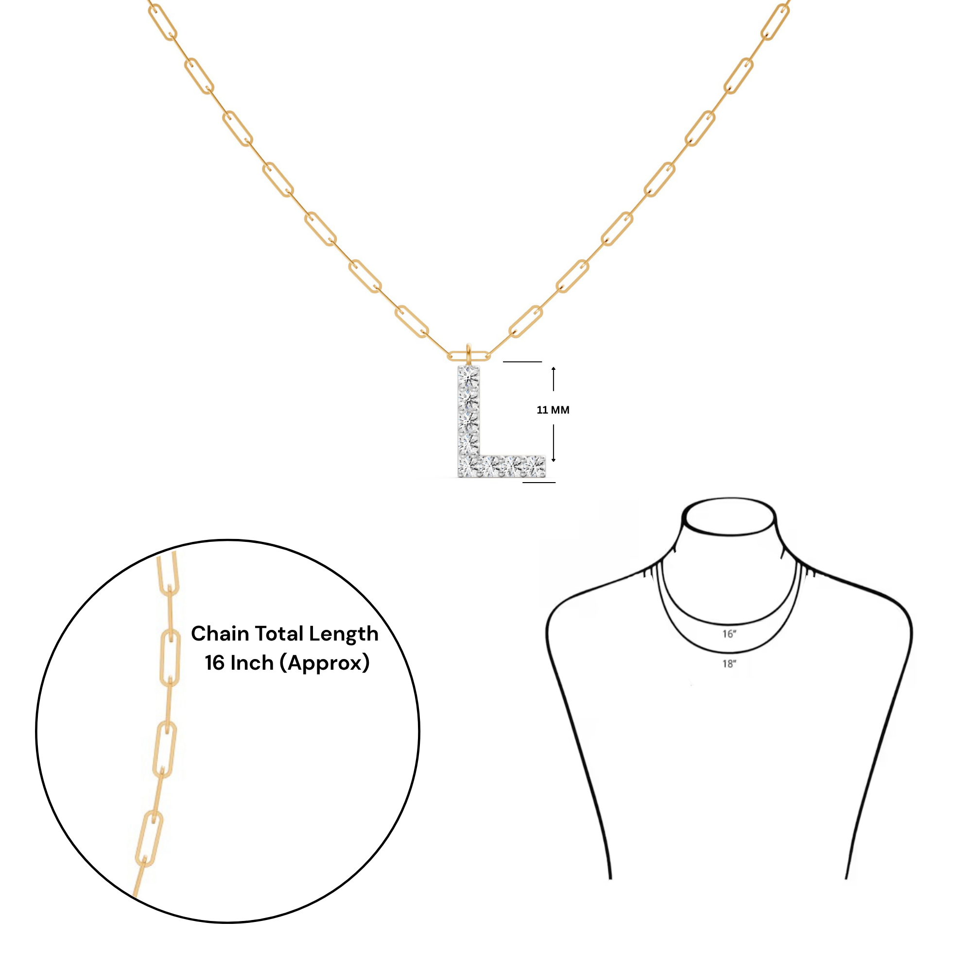 Personalized Letter 'L' Lab-Grown Diamond Necklace in 18K Hallmarked Gold