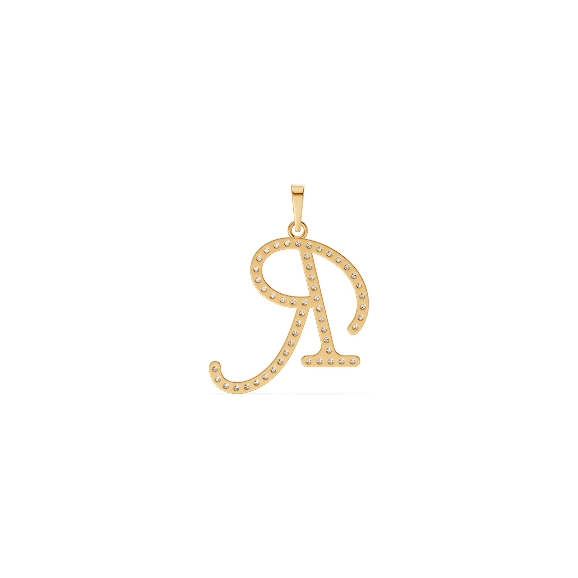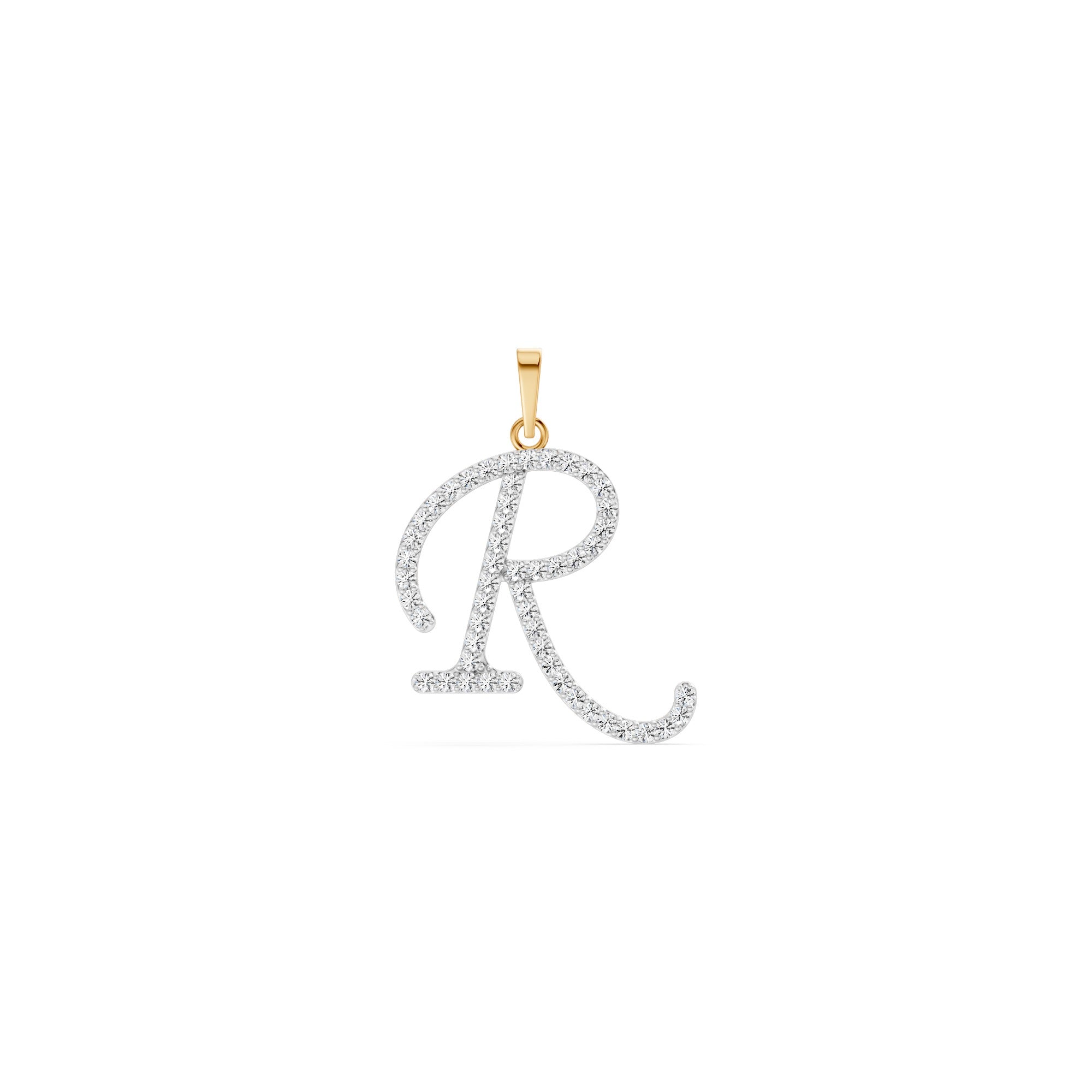 Personalized Letter 'R' Lab-Grown Diamond Fancy Pendant in 18K Hallmarked Gold