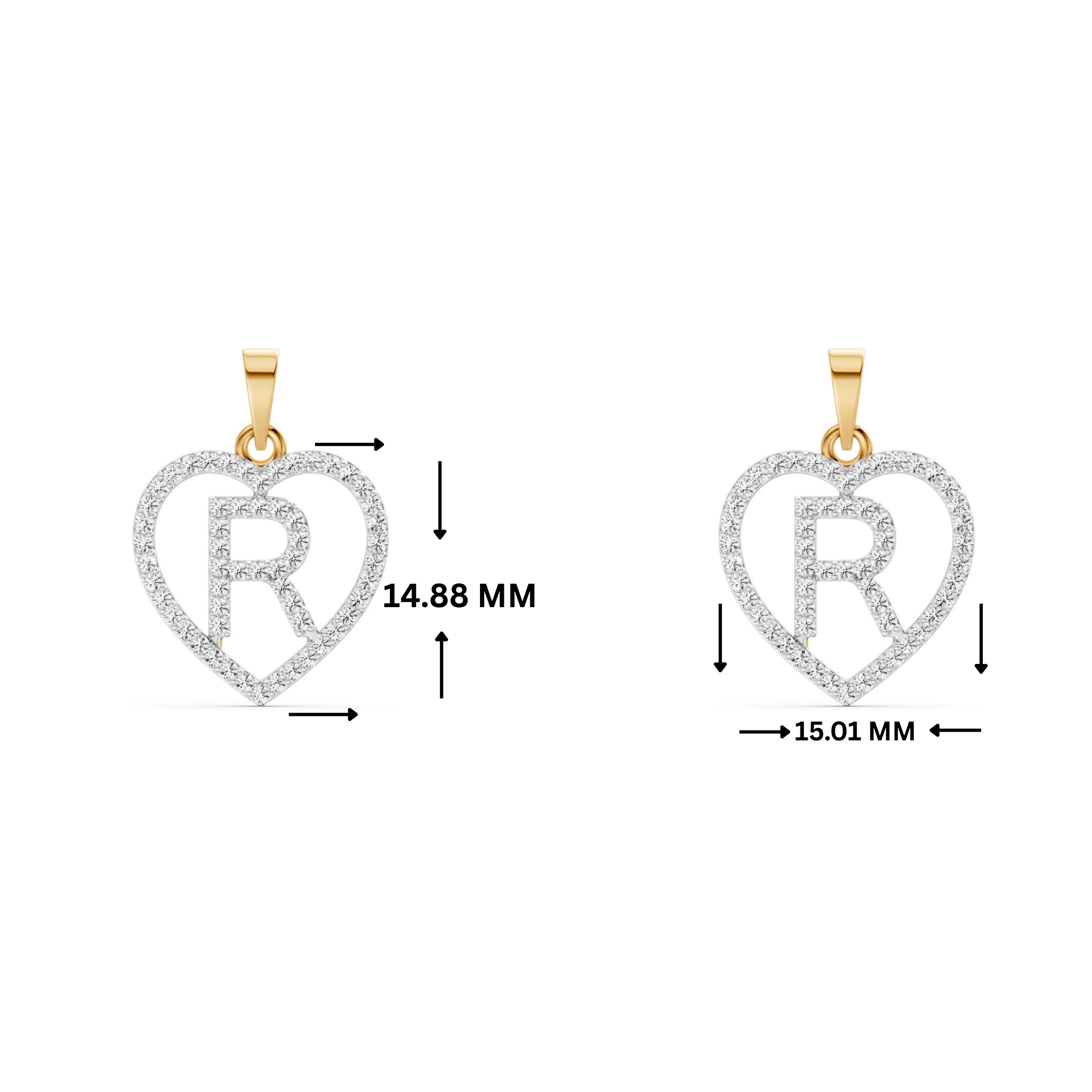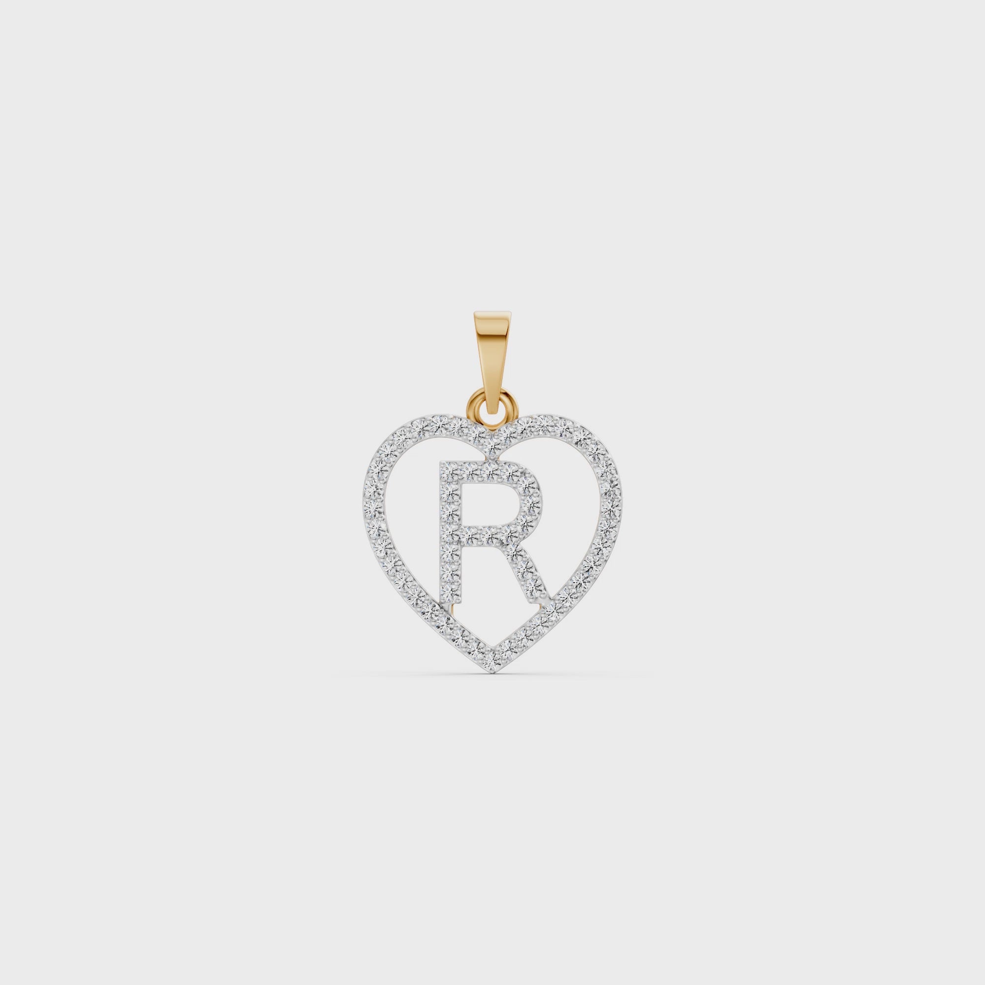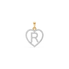 Personalized Letter 'R' Lab-Grown Diamond Heart Pendant in 18K Hallmarked Gold