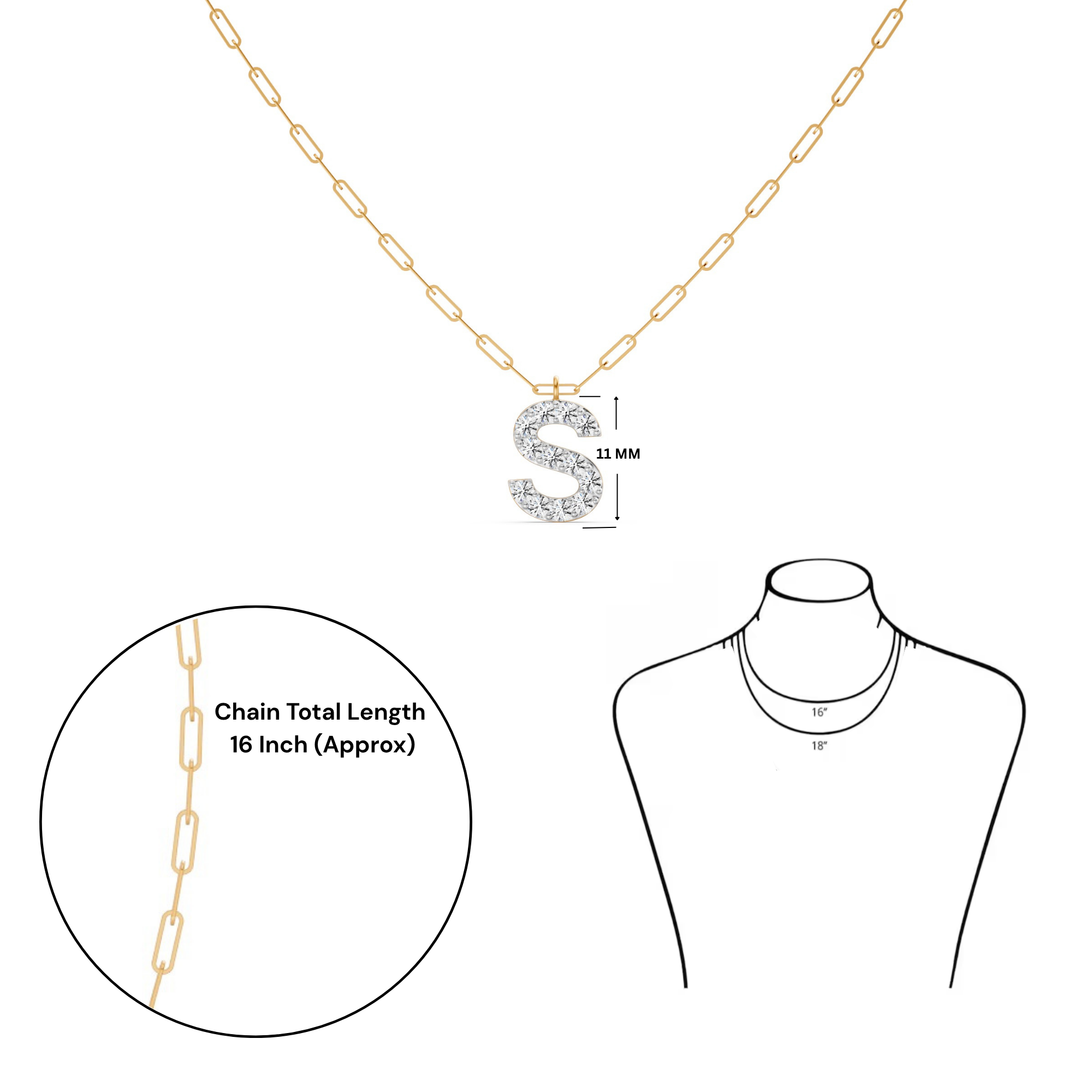 Featuring the timeless MYZA Personalized Letter 'S' Lab-Grown Diamond Necklace in 18K Hallmarked Gold.