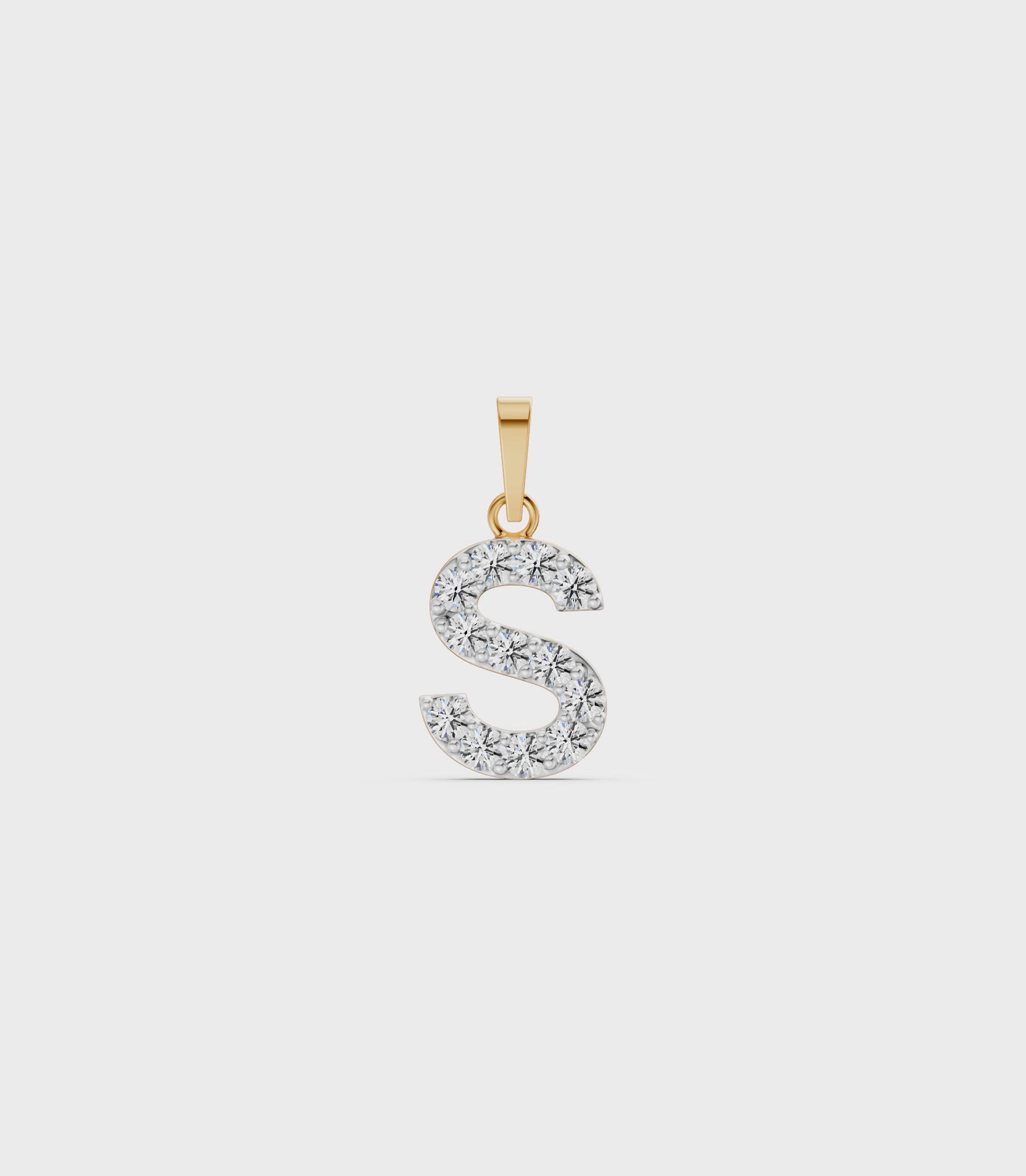 Personalized Letter 'S' Lab-Grown Diamond Pendant in 18K Hallmarked Gold