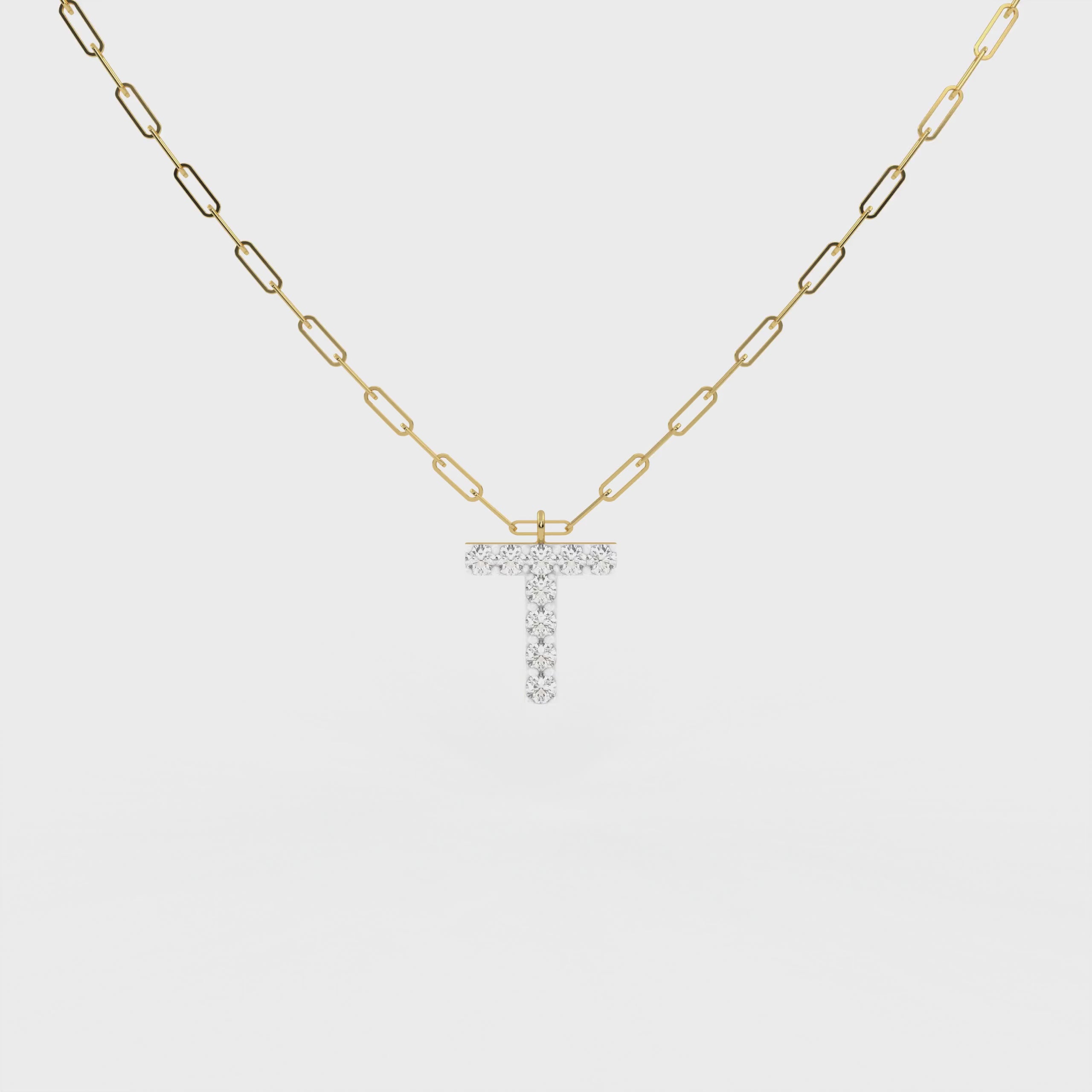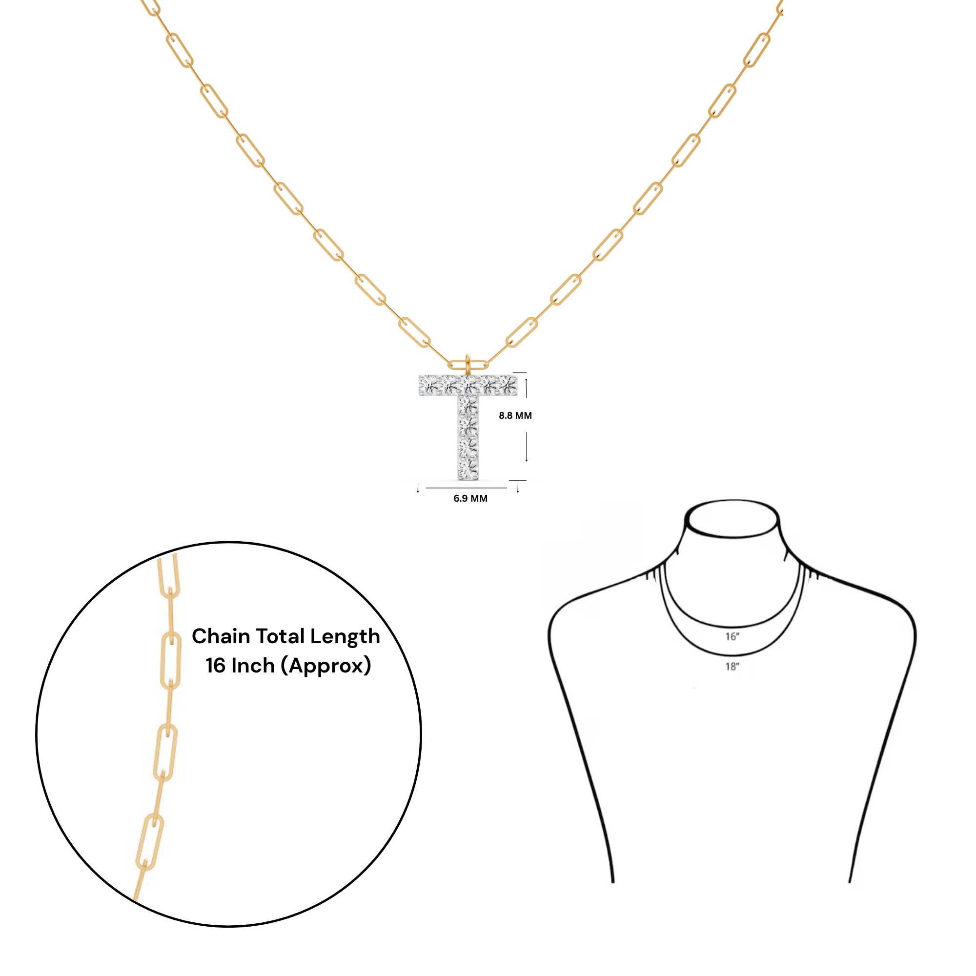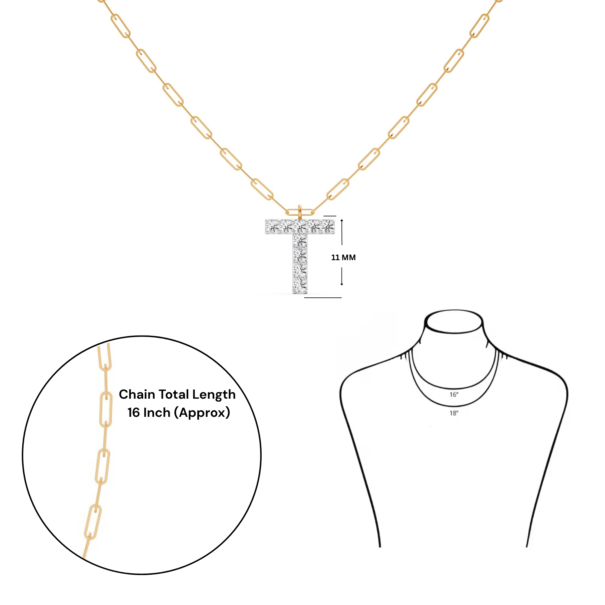 Personalized Letter 'T' Lab-Grown Diamond Necklace in 18K Hallmarked Gold
