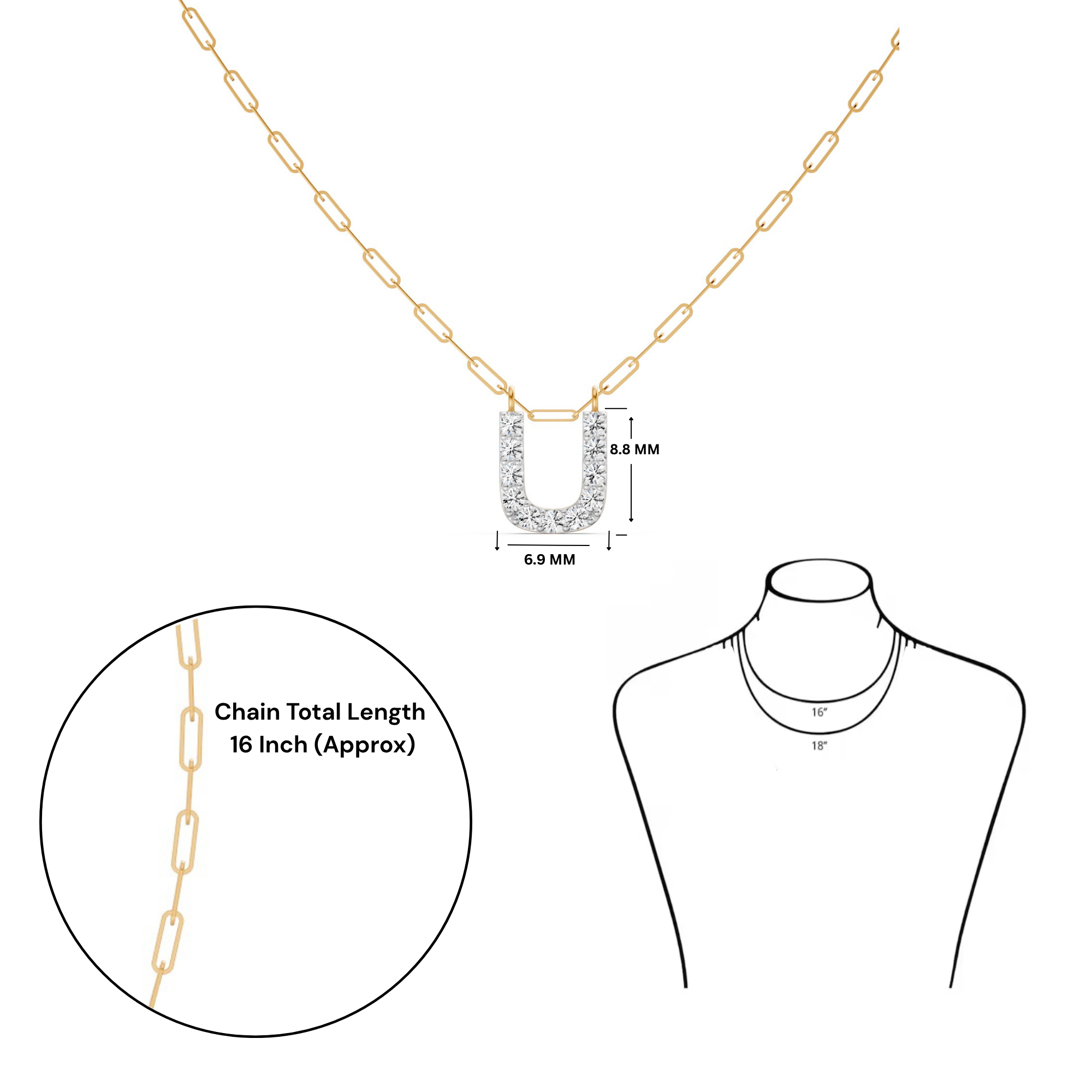 Featuring the timeless MYZA Personalized Letter 'U' Lab-Grown Diamond Necklace in 18K Hallmarked Gold.