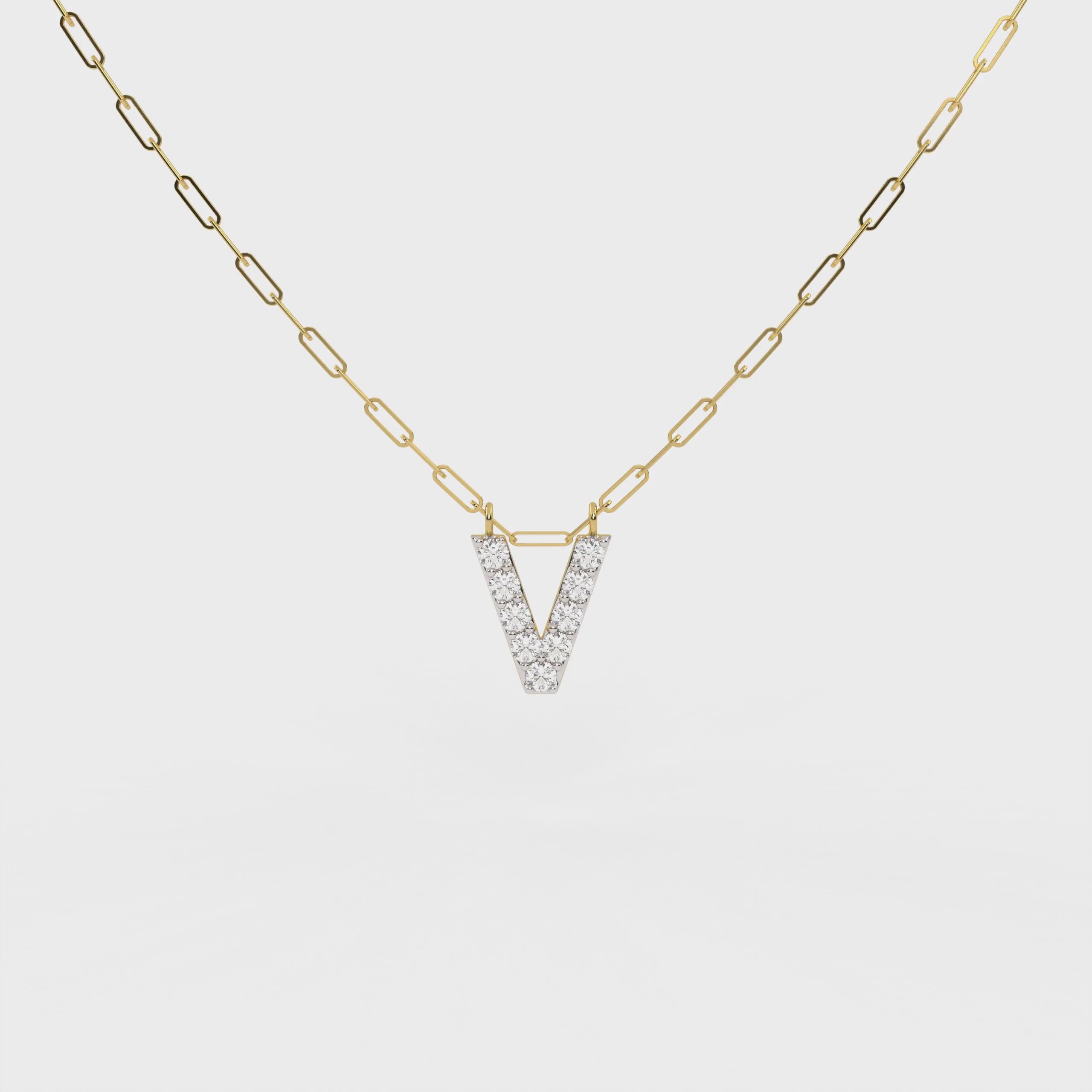 Personalized Letter 'V' Lab-Grown Diamond Necklace in 18K Hallmarked Gold