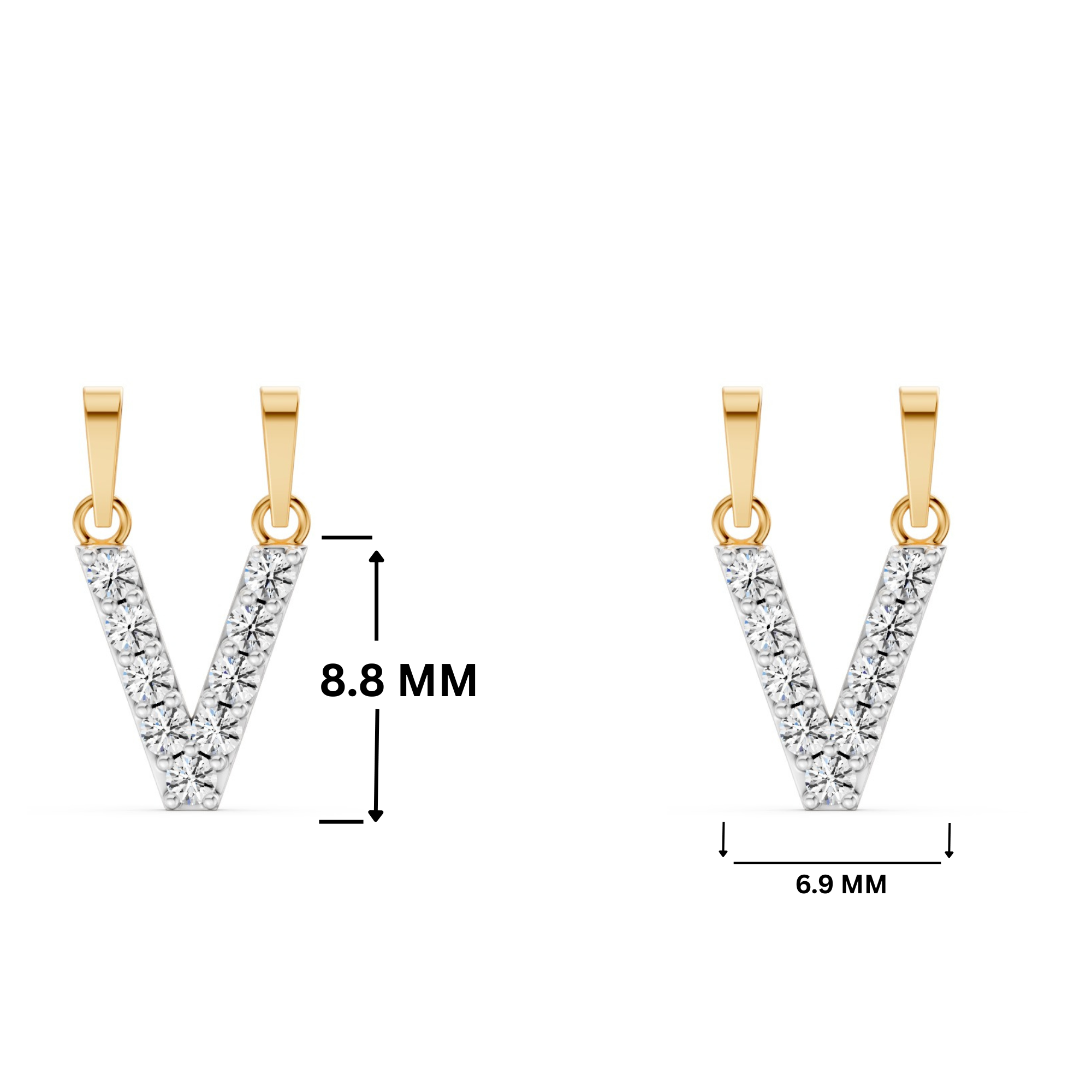 Featuring the timeless MYZA Personalized Letter 'V' Lab-Grown Diamond Pendant in 18K Hallmarked Gold.