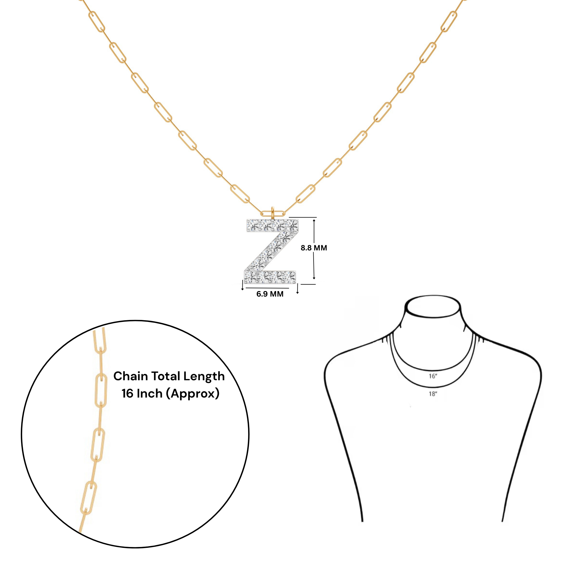 Personalized Letter 'Z' Lab-Grown Diamond Necklace in 18K Hallmarked Gold