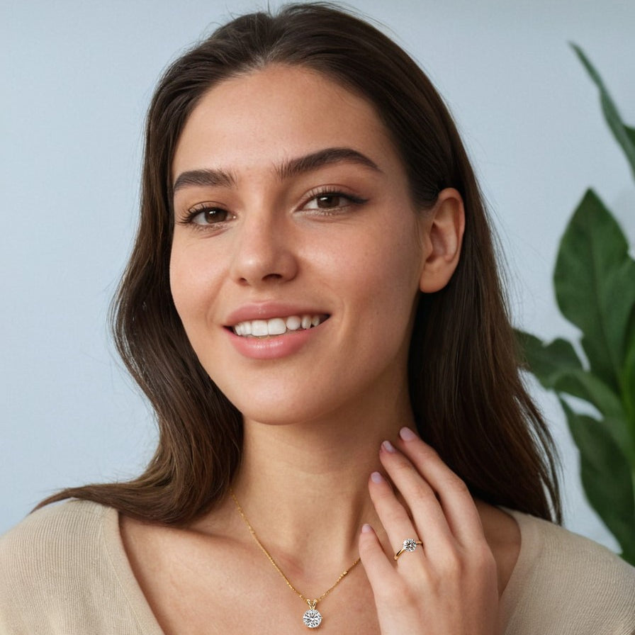 - The modern woman who values Sustainable Women's Jewelry, offering a magnificent, conflict-free Round Diamond set in premium 18K Hallmarked Gold.
