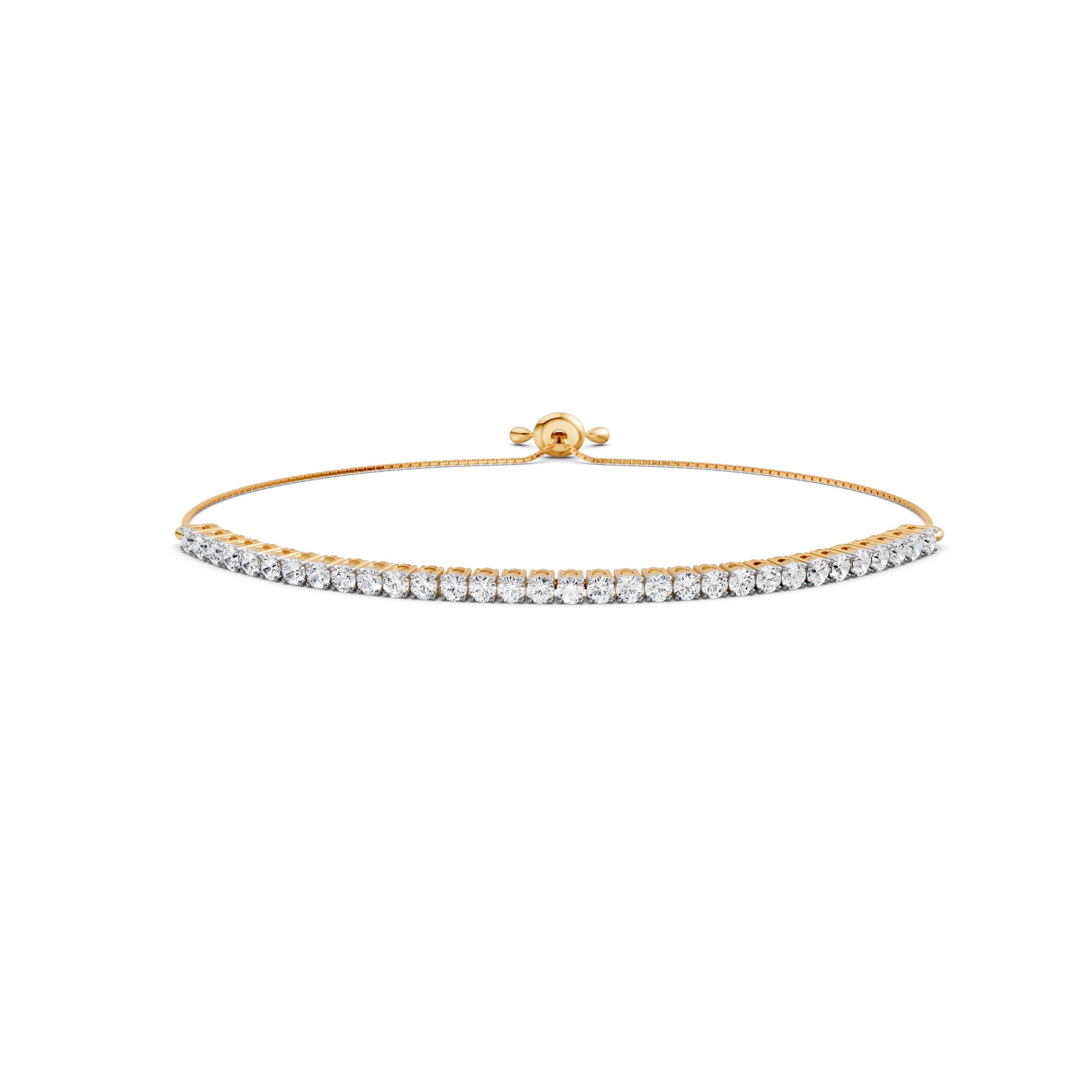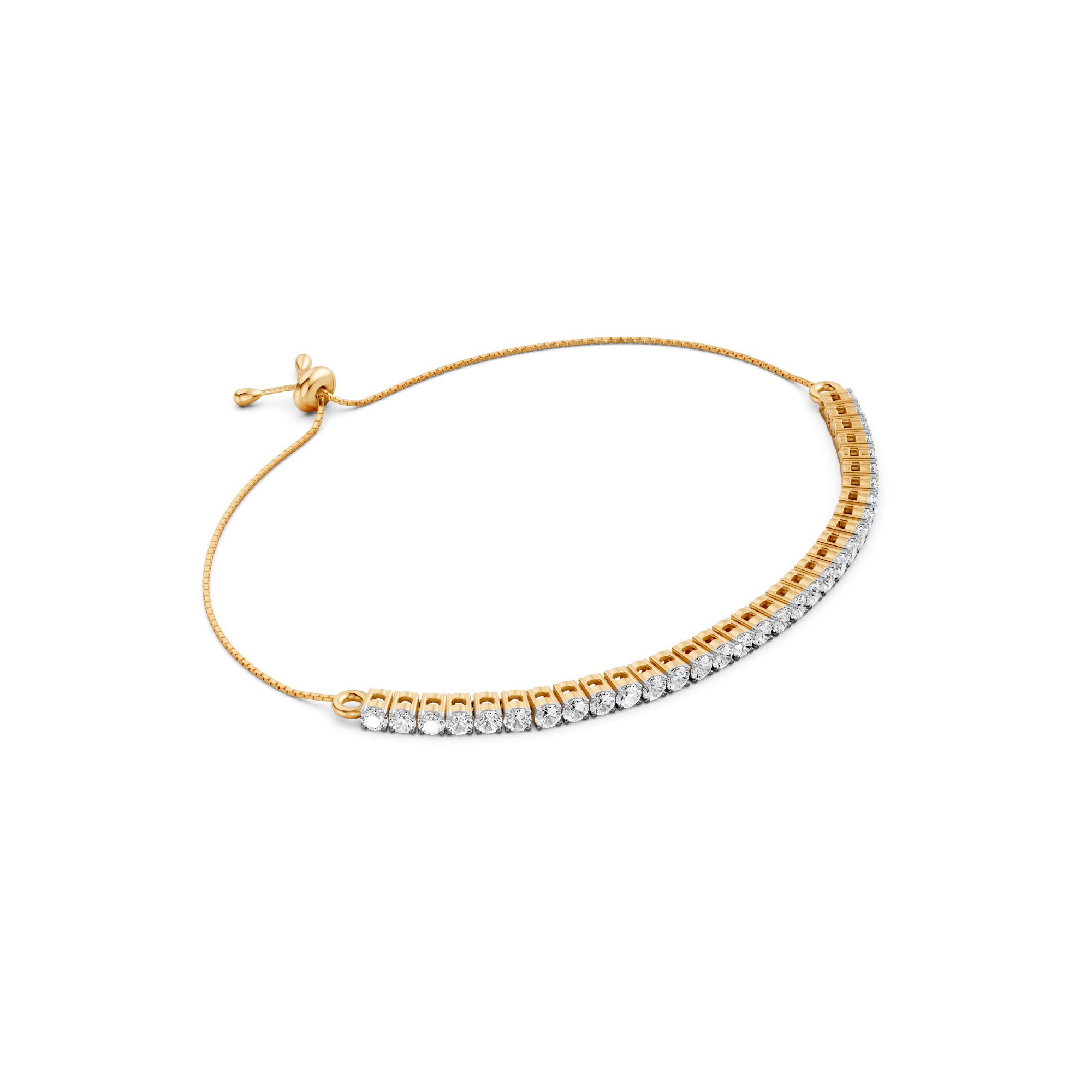 Featuring the timeless MYZA 0.96 to 3.2 Carats MYZA IGI Certified Lab Grown Round Brilliant Cut Diamond Tennis adjustable chain Bracelet in 18K Hallmark Gold.